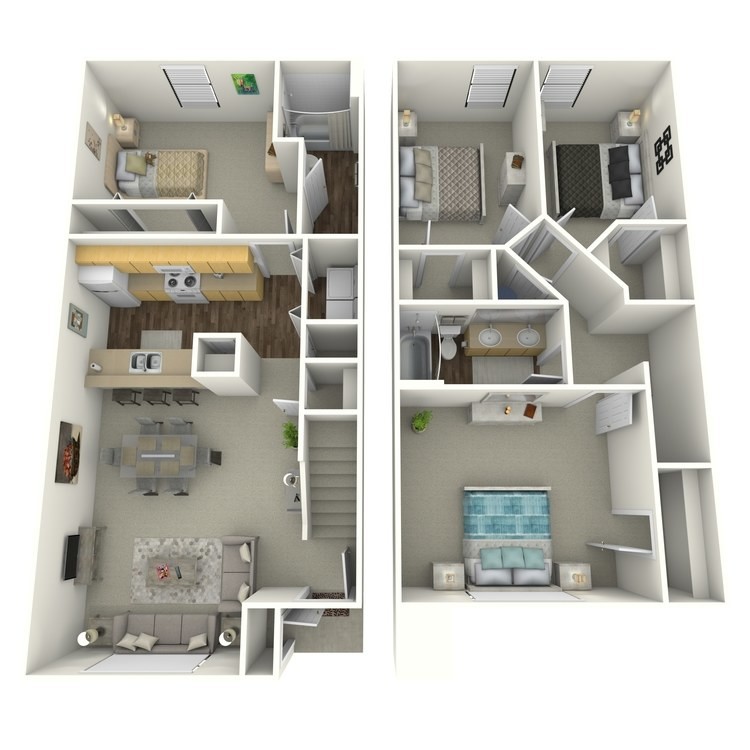 Modelo de apartamento: Four Bedroom Townhome$1,3484 Dormitorios, 2 Baños, 1569 sq ftNo DisponiblePlanosFotosFour Bedroom Townhome - Imagen 1 Four Bedroom Townhome - Imagen 2 Four Bedroom Townhome - Imagen 3 Four Bedroom Townhome - Imagen 4 Four Bedroom Townhome - Plano 5