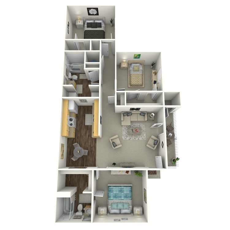 Precio Fecha Disponibilidad Unidad Pies² $1,086 Llamar para disponibilidad Three Bedroom Haven 1569 pies² Características y Comodidades de Modelo