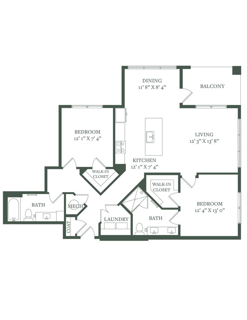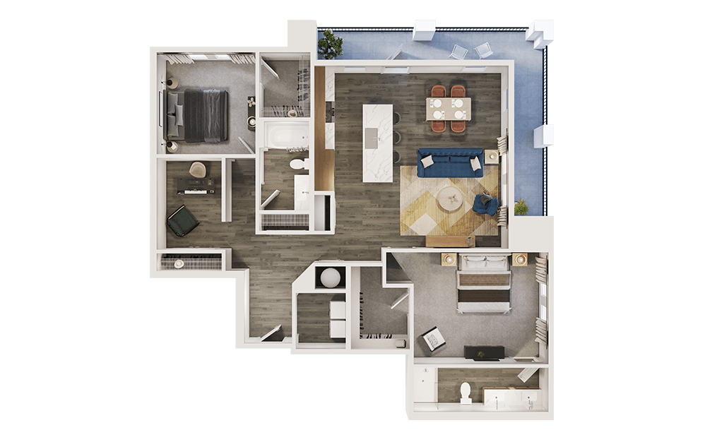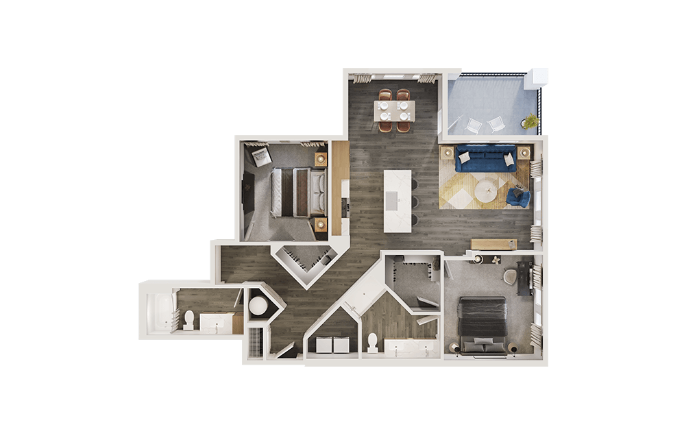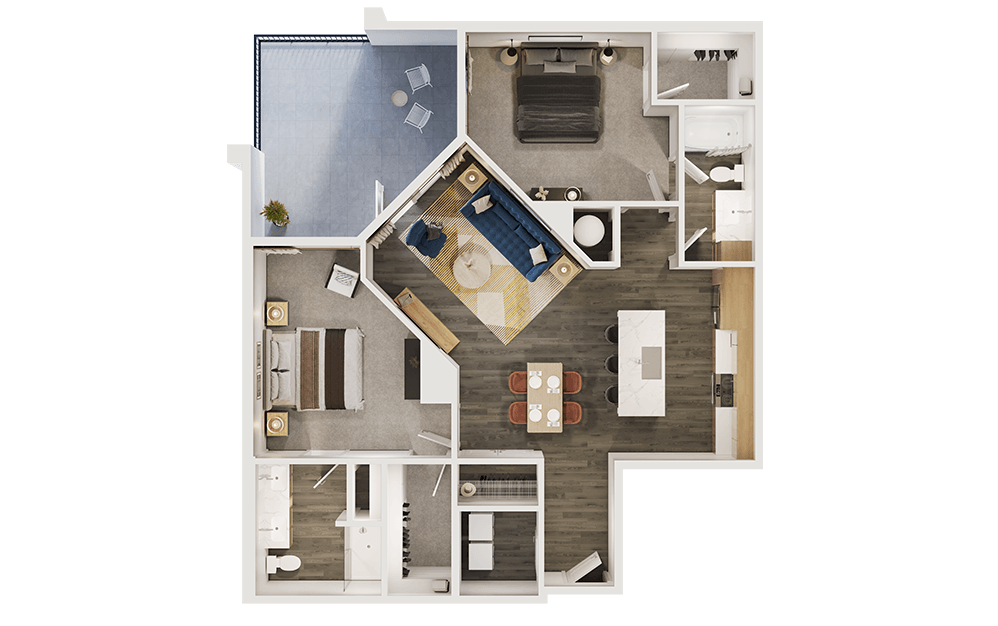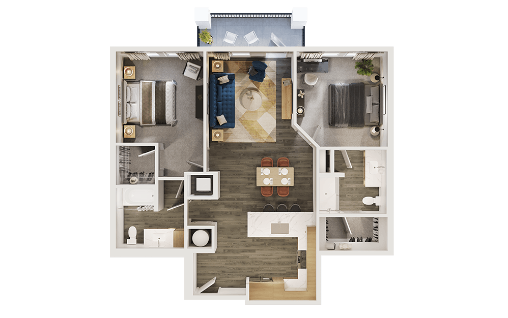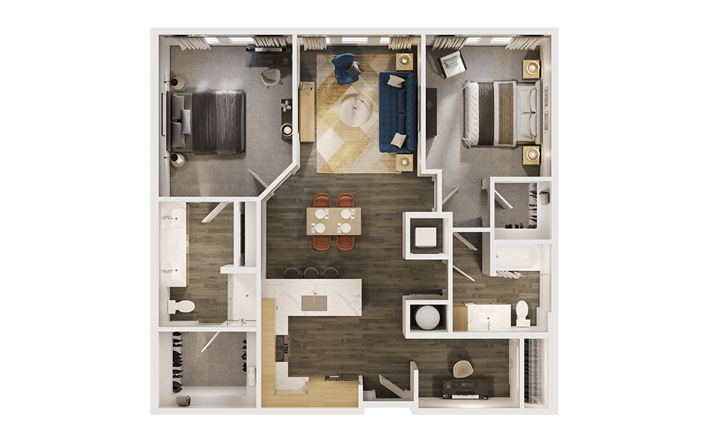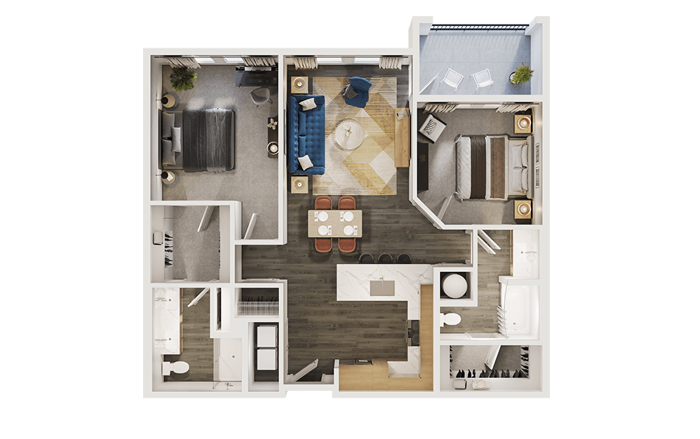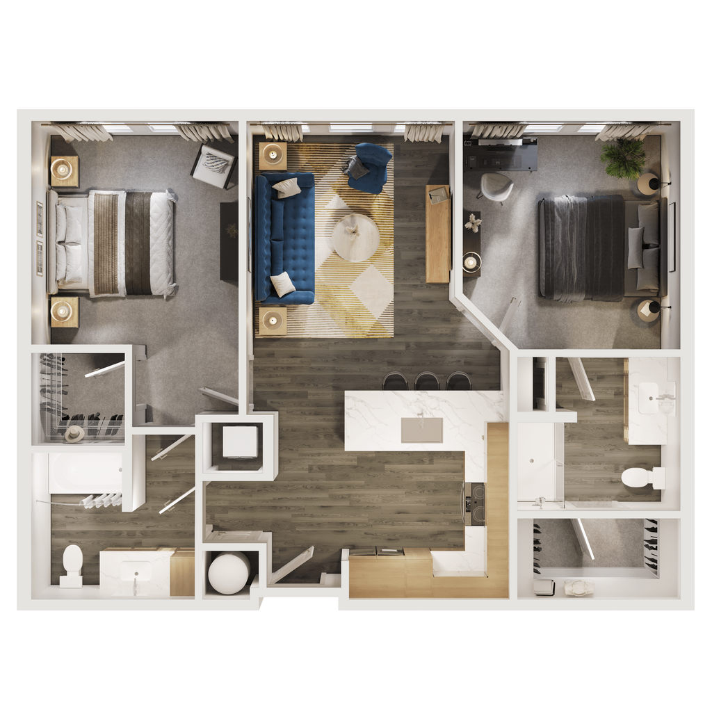 Modelo de apartamento: A2Desde $1,6991 Dormitorio, 1 Baño, 758 sq ftDisponible Ahora![]()