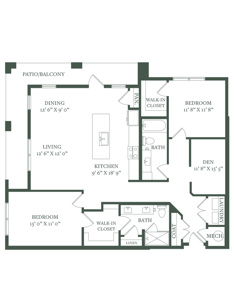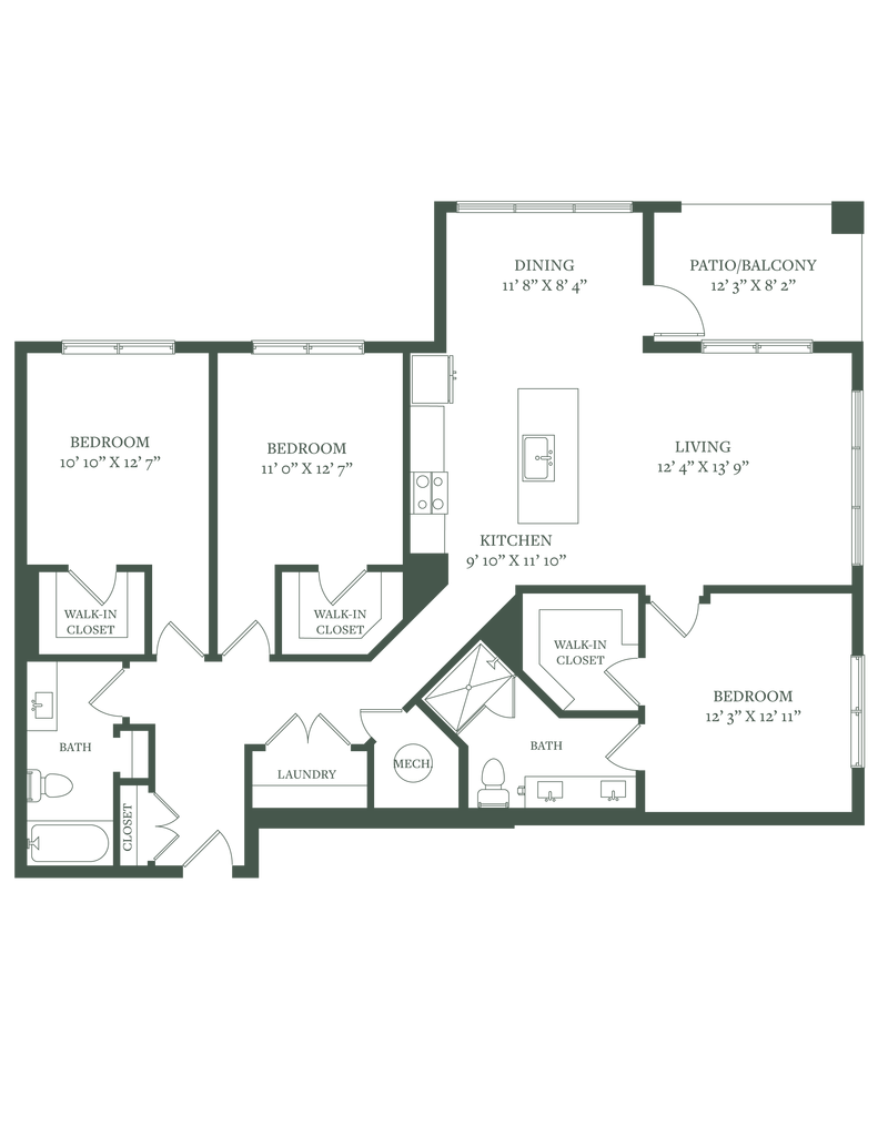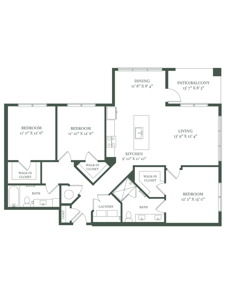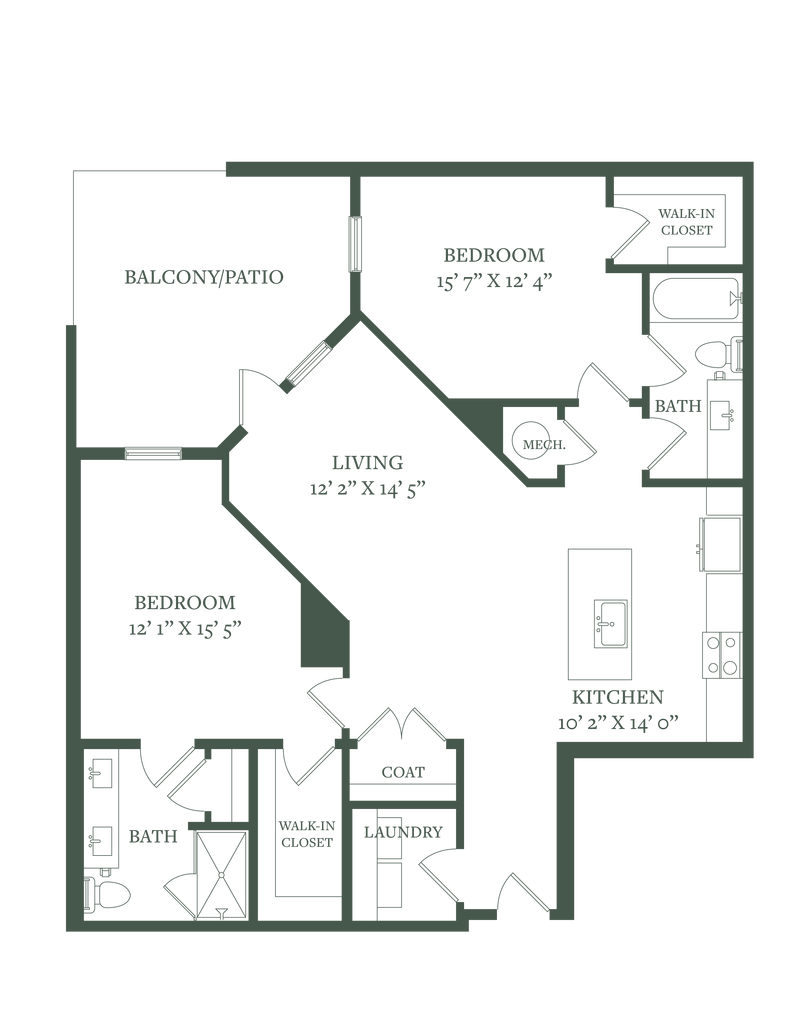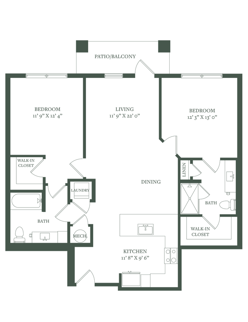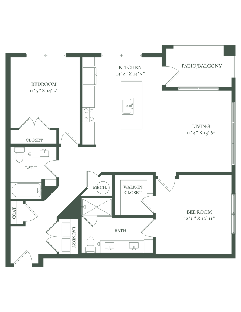 Modelo de apartamento: A2Desde $1,6991 Dormitorio, 1 Baño, 758 sq ftDisponible Ahora![]()