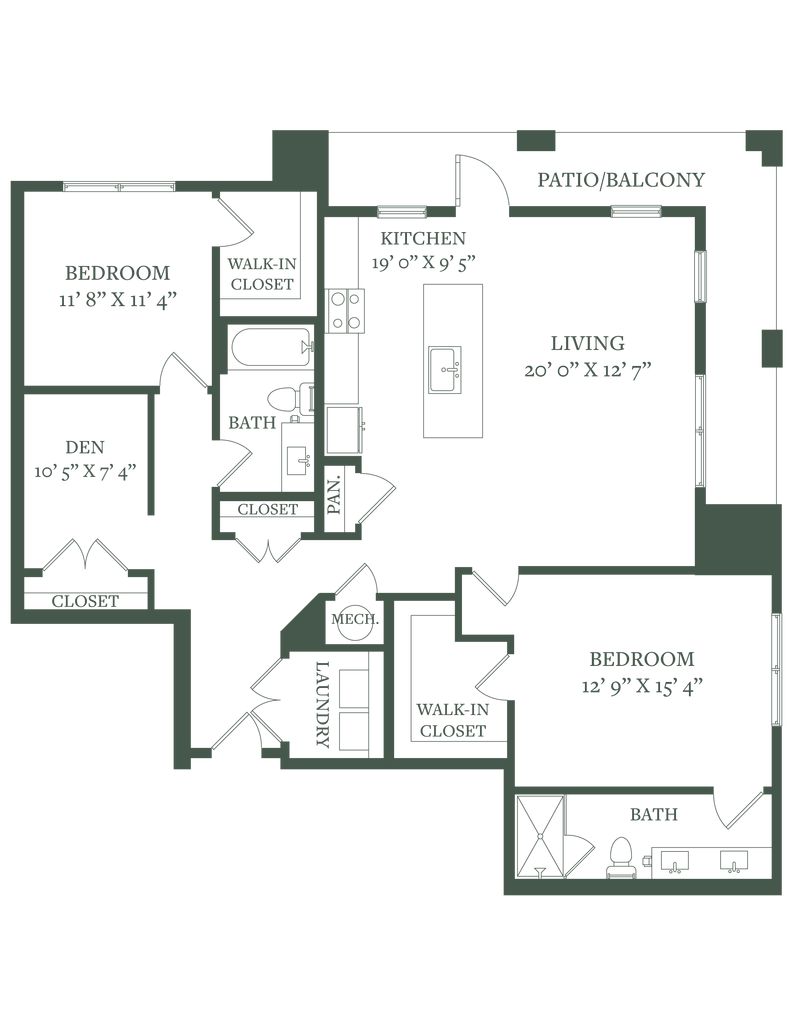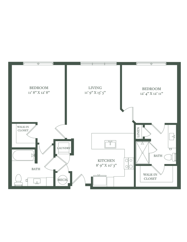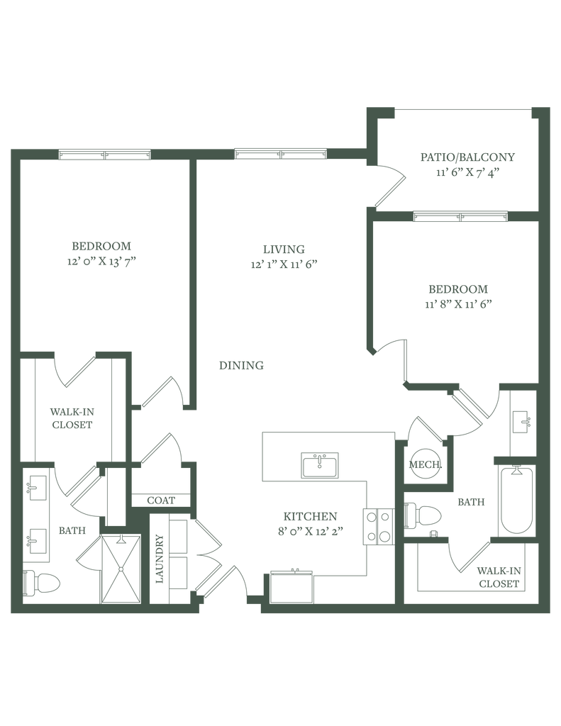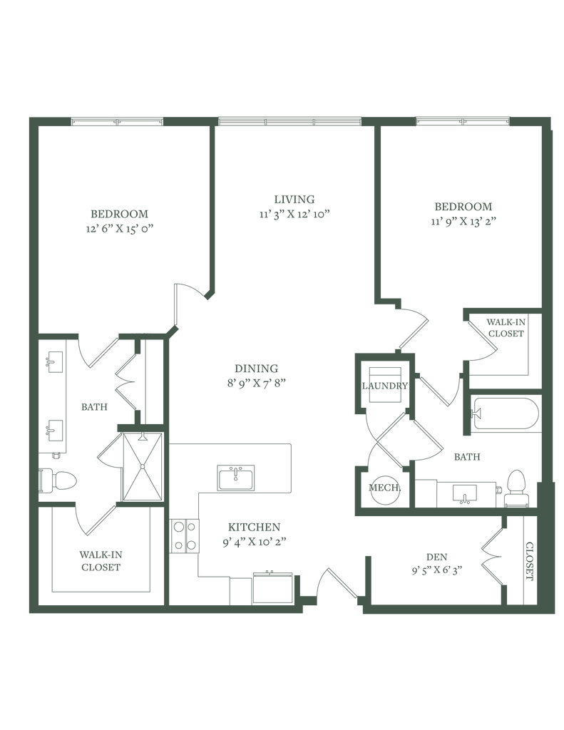 1 Dormitorio, 1 Baño, 758 pies²Disponible AhoraGalería del Modelo