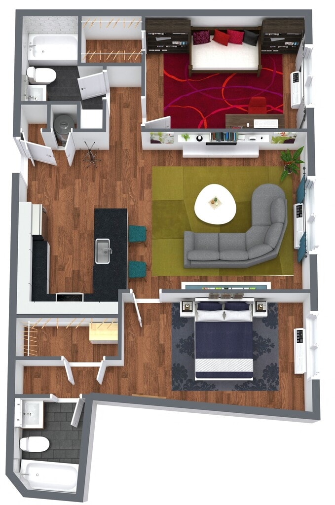 1 Bedroom Standard - Plano 4 Unidad de apartamento: 309Modelo de apartamento: 1 Bedroom Standard$1,7251 Dormitorio, 1 Baño, 690 sq ftDisponible June 1, 2026![]()