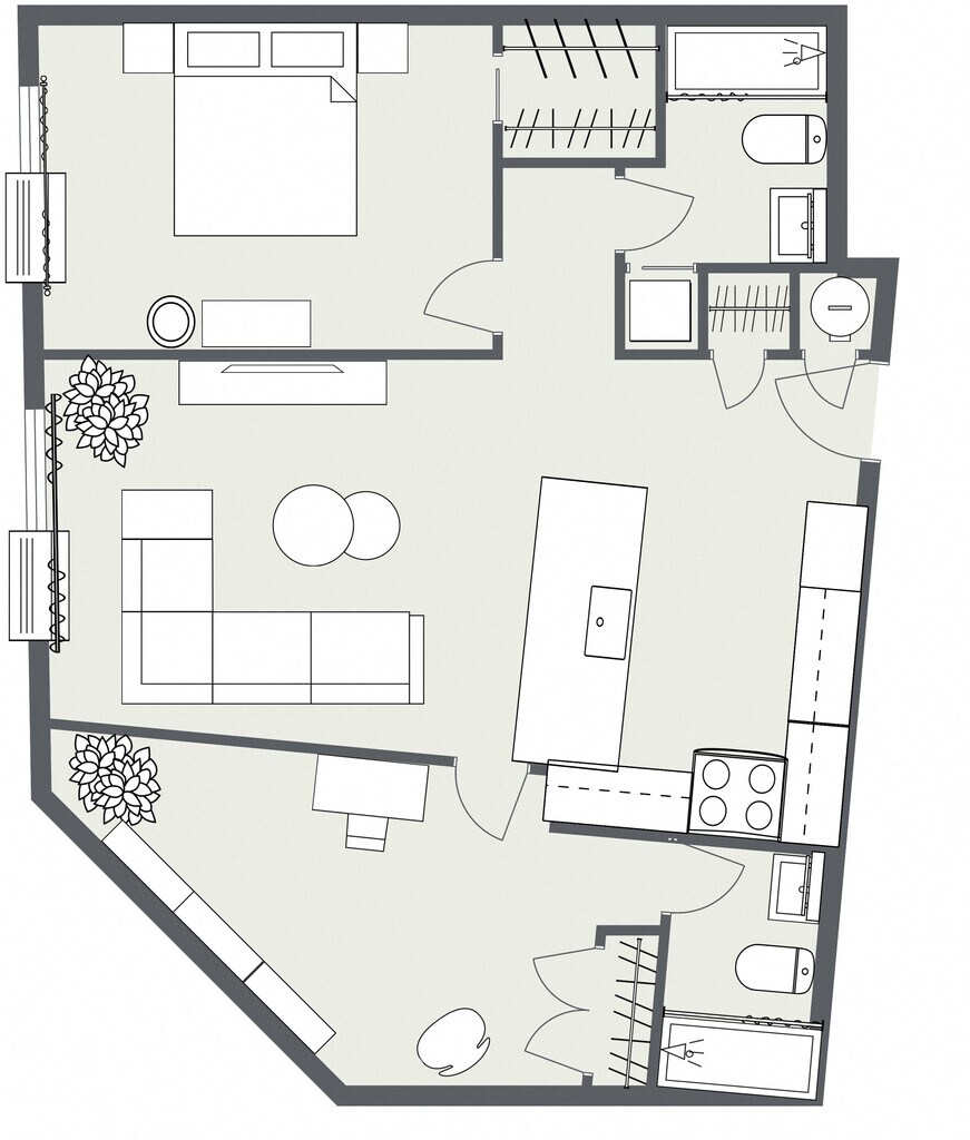 1 Bedroom + Den, 1 Bath - Plano 2 1 Bedroom Ultra Deluxe