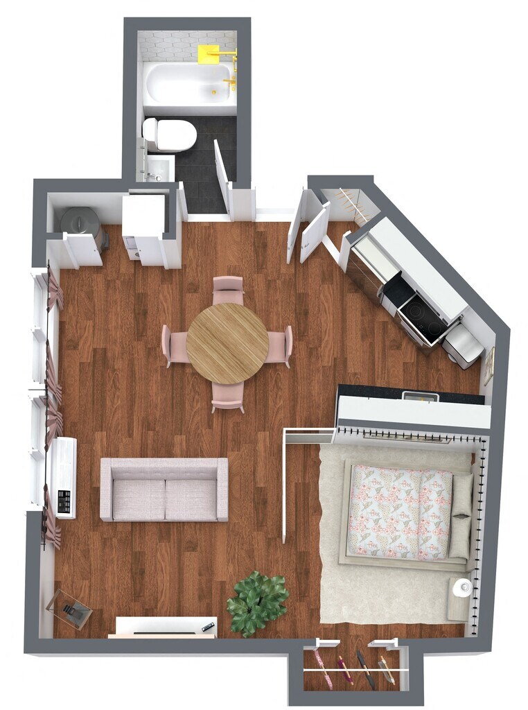 Studio, 1 Bath - Plano 4 Unidad de apartamento: 212Modelo de apartamento: Studio, 1 Bath$1,425Estudio, 1 Baño, 520 sq ftDisponible July 1, 2026![]()