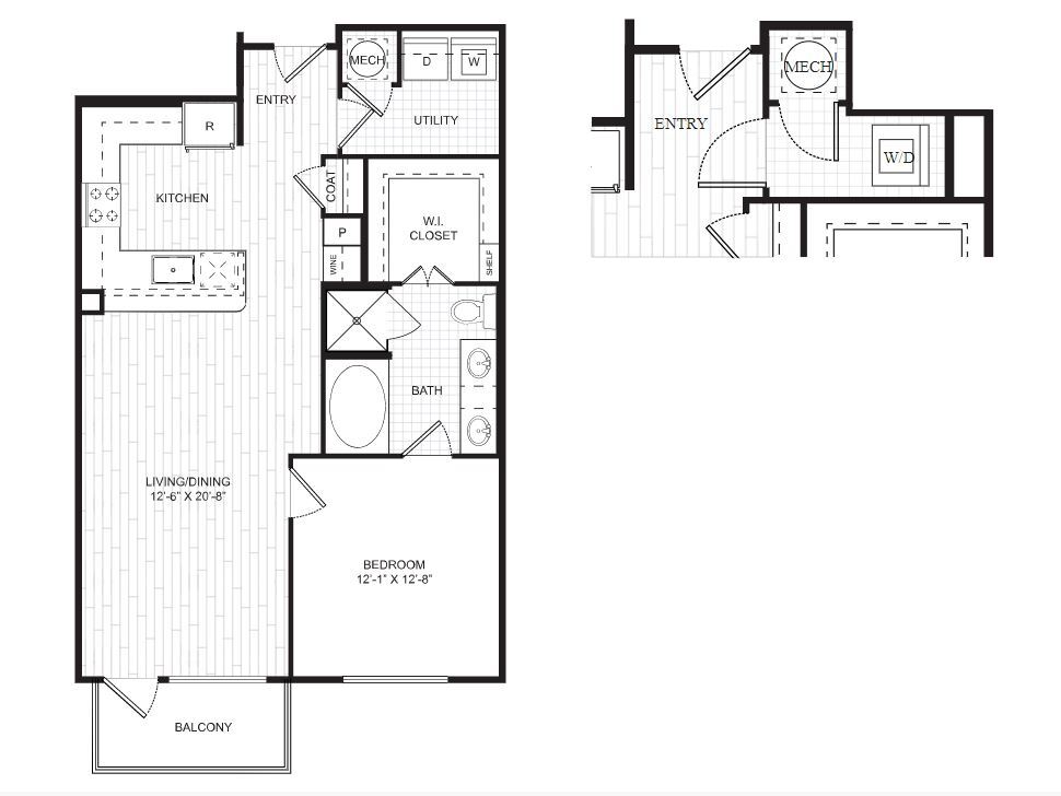 1 Dormitorio, 1 Baño, 738 pies²Galería del Modelo