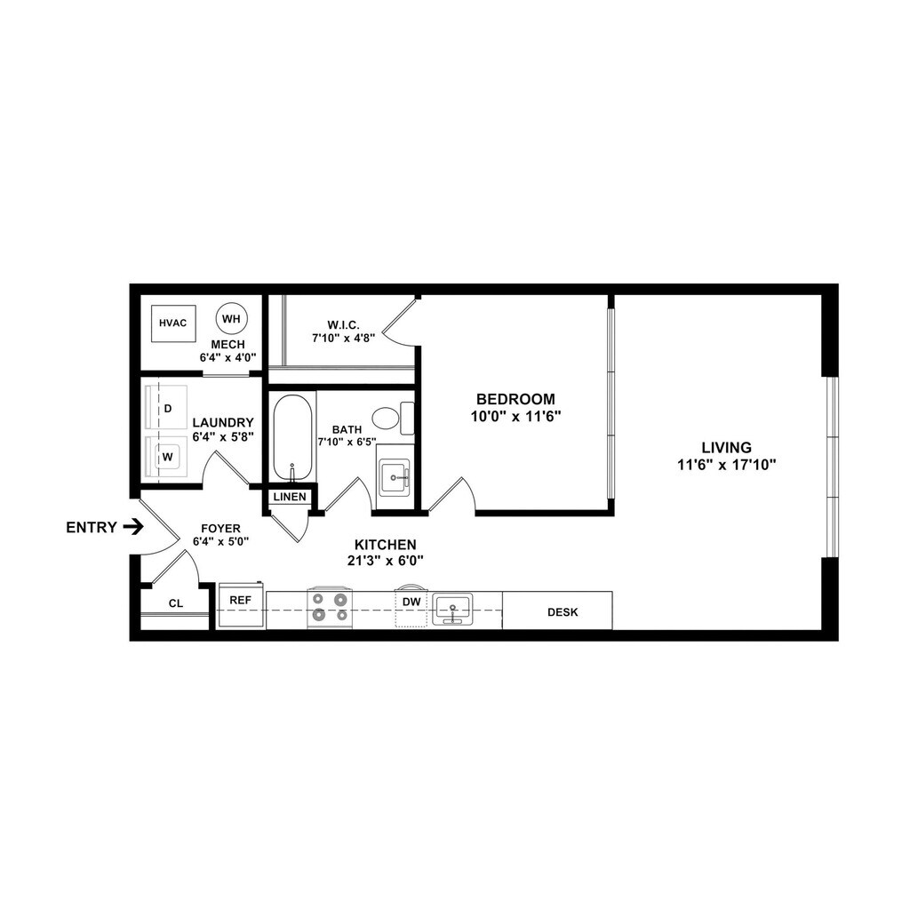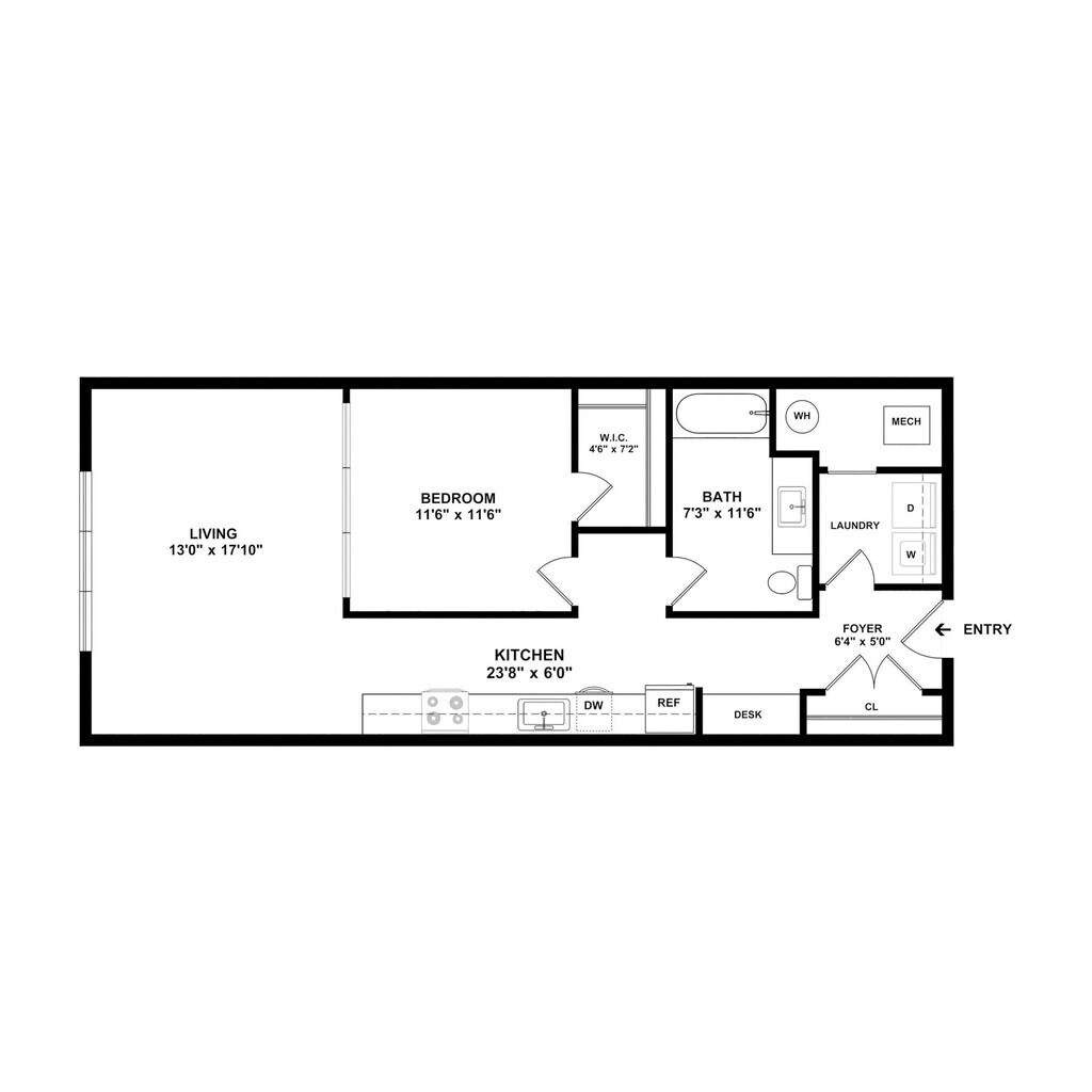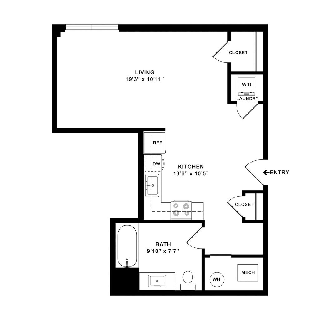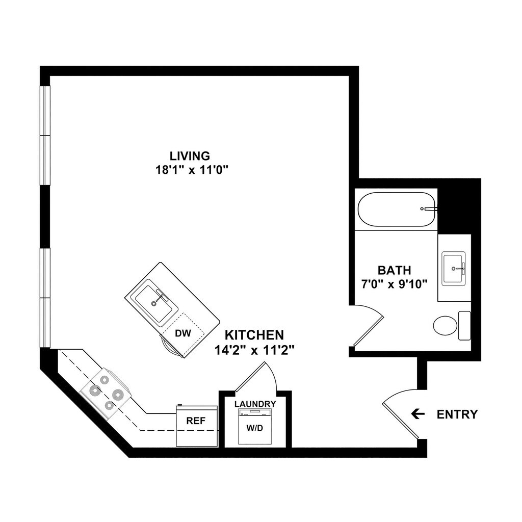 Estudio, 1 Baño, 575 pies²Disponible AhoraGalería del Modelo
