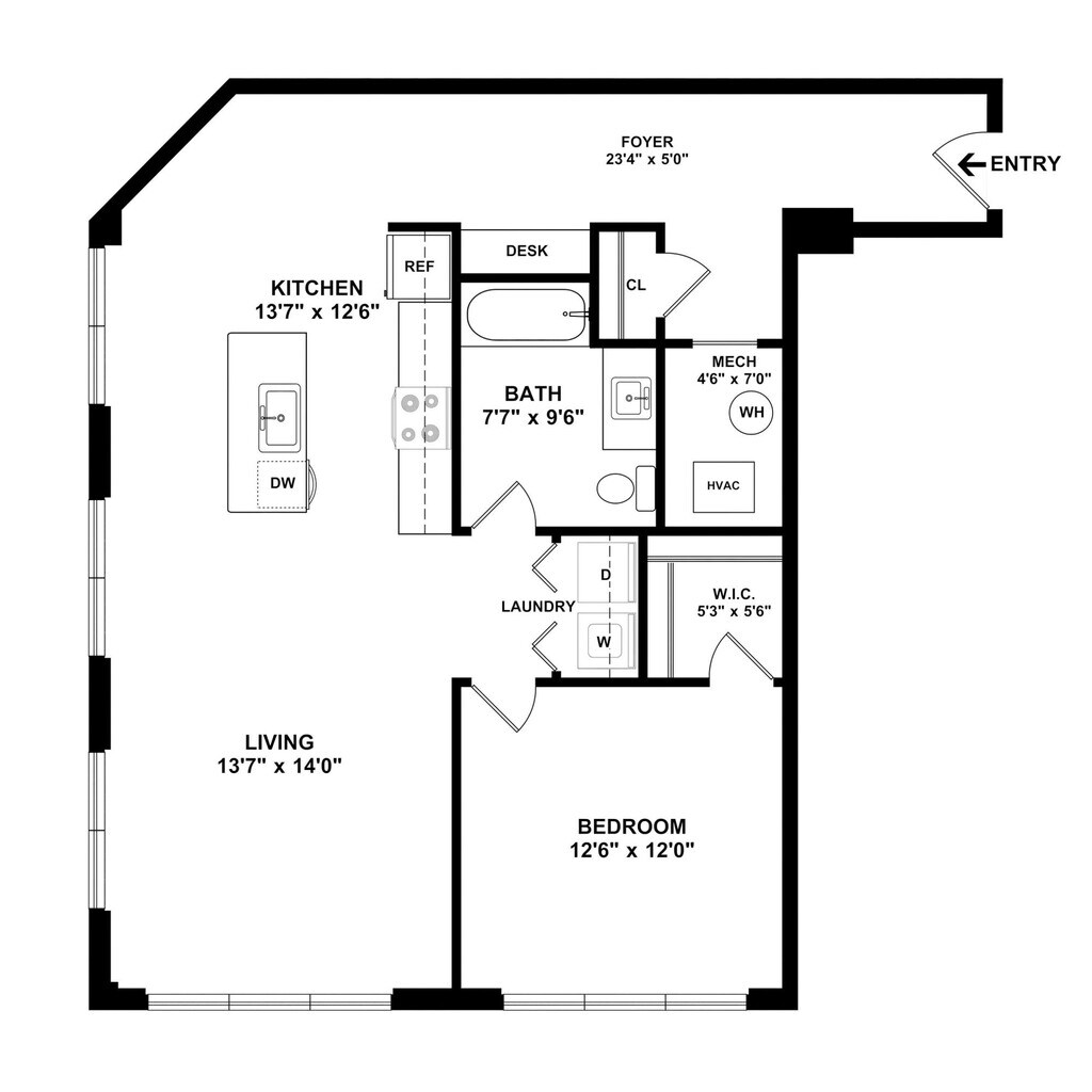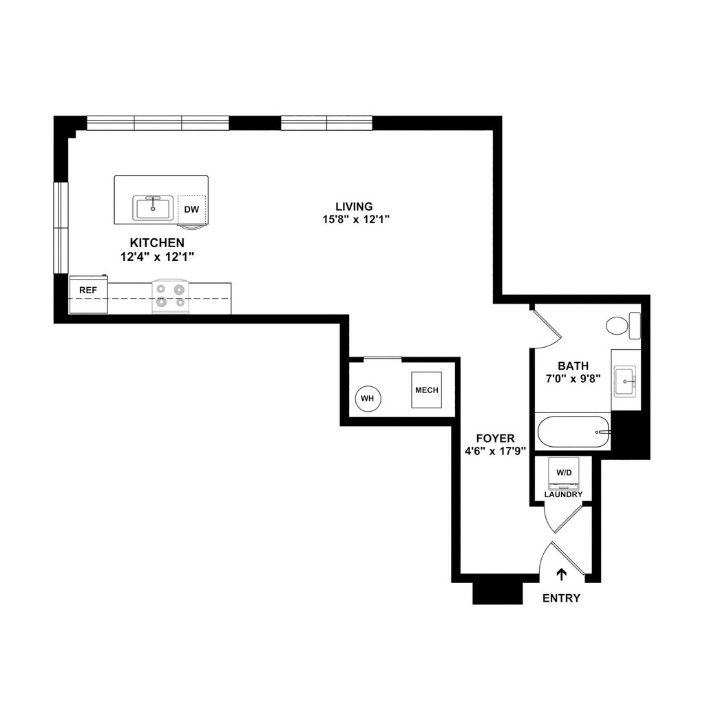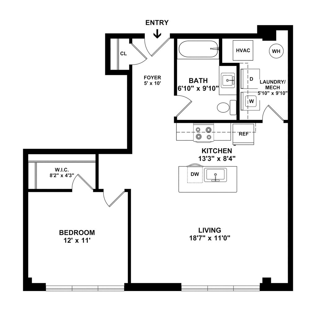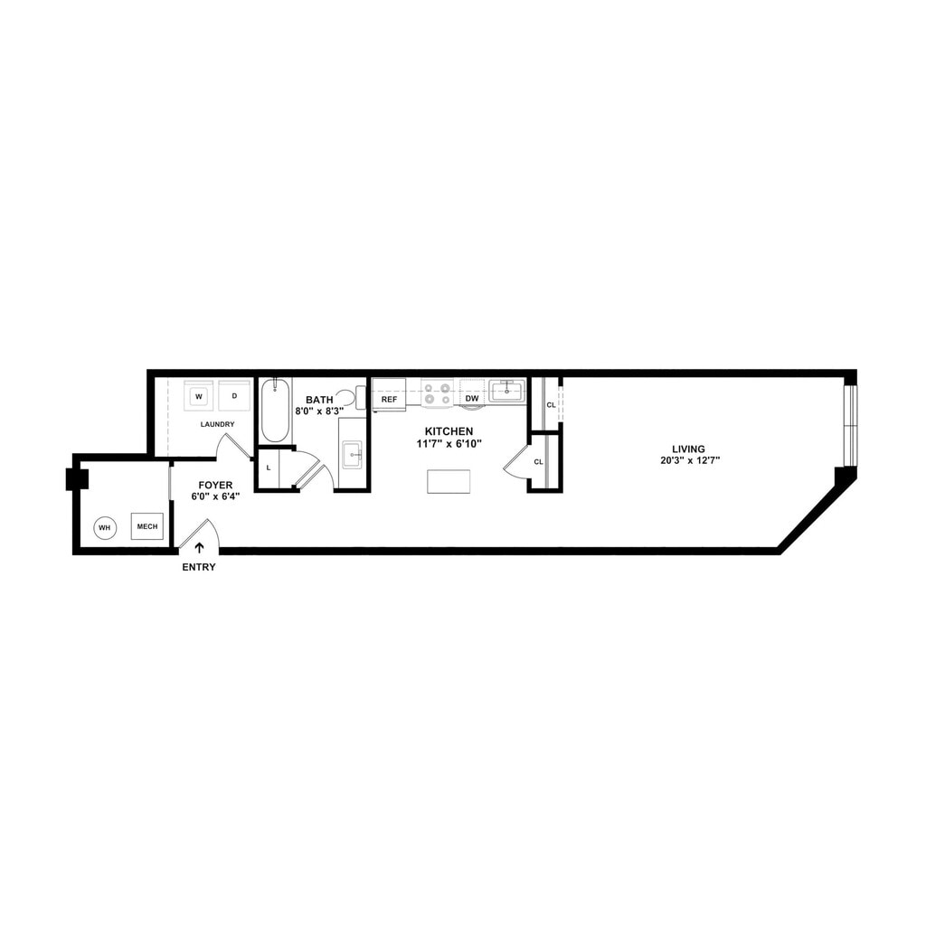 Estudio, 1 Baño, 575 pies²Disponible AhoraGalería del Modelo