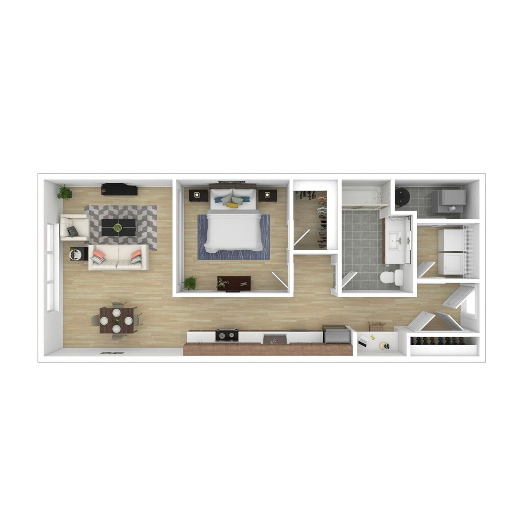 Estudio, 1 Baño, 710 pies²Disponible AhoraEl más grandeEsta opción tiene las unidades más grandes para este modeloGalería del Modelo