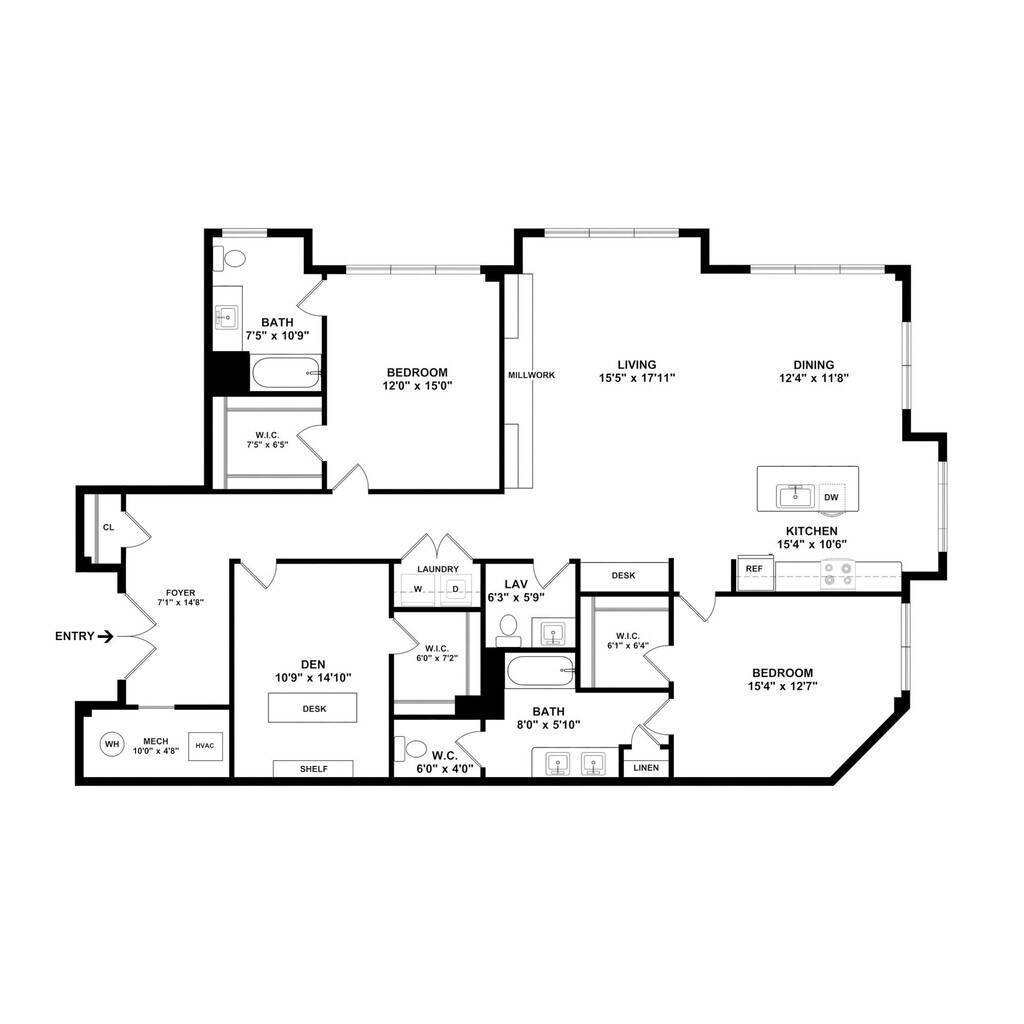 Modelo de apartamento: Studio ADesde $1,500Estudio, 1 Baño, 710 sq ftDisponible Ahora![]()