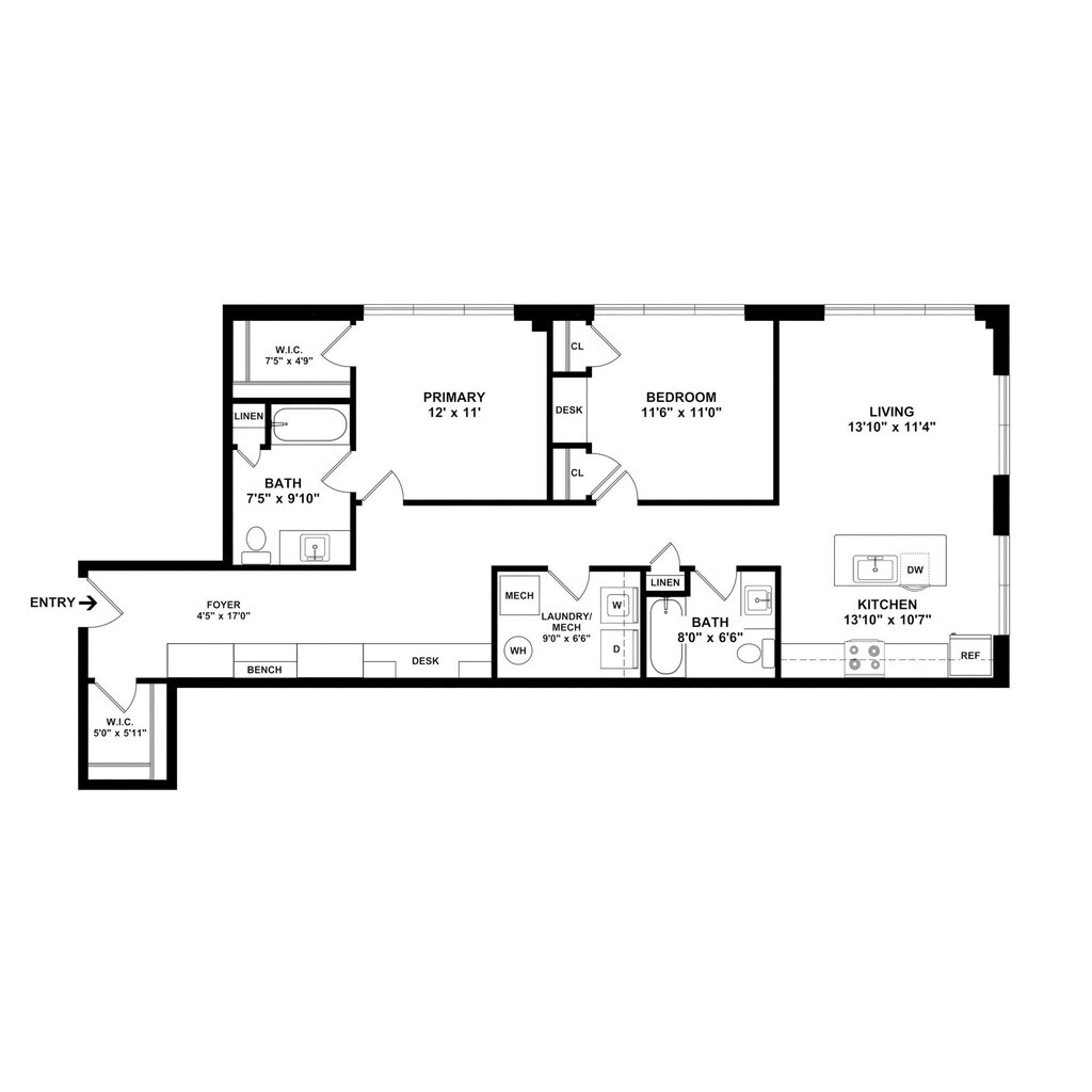 Modelo de apartamento: Studio BDesde $1,475Estudio, 1 Baño, 575 sq ftDisponible Ahora![]()