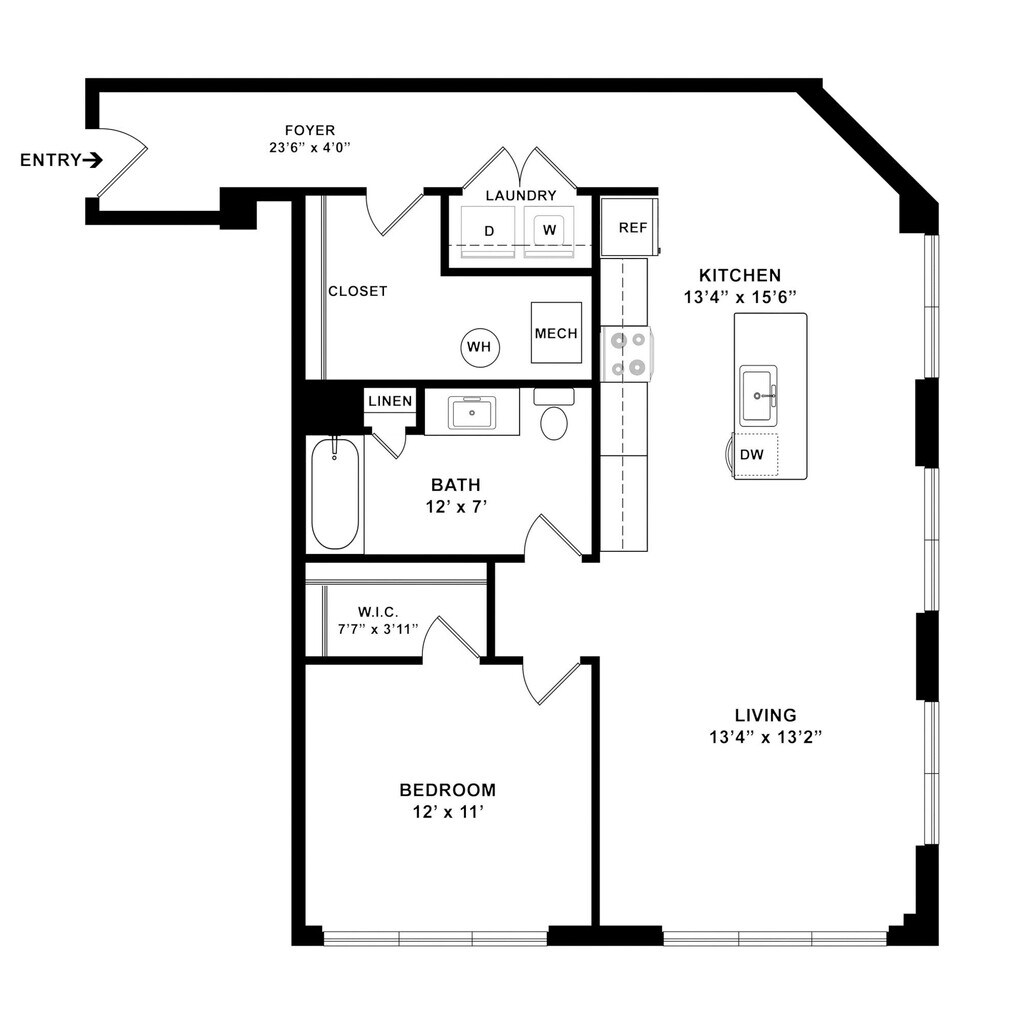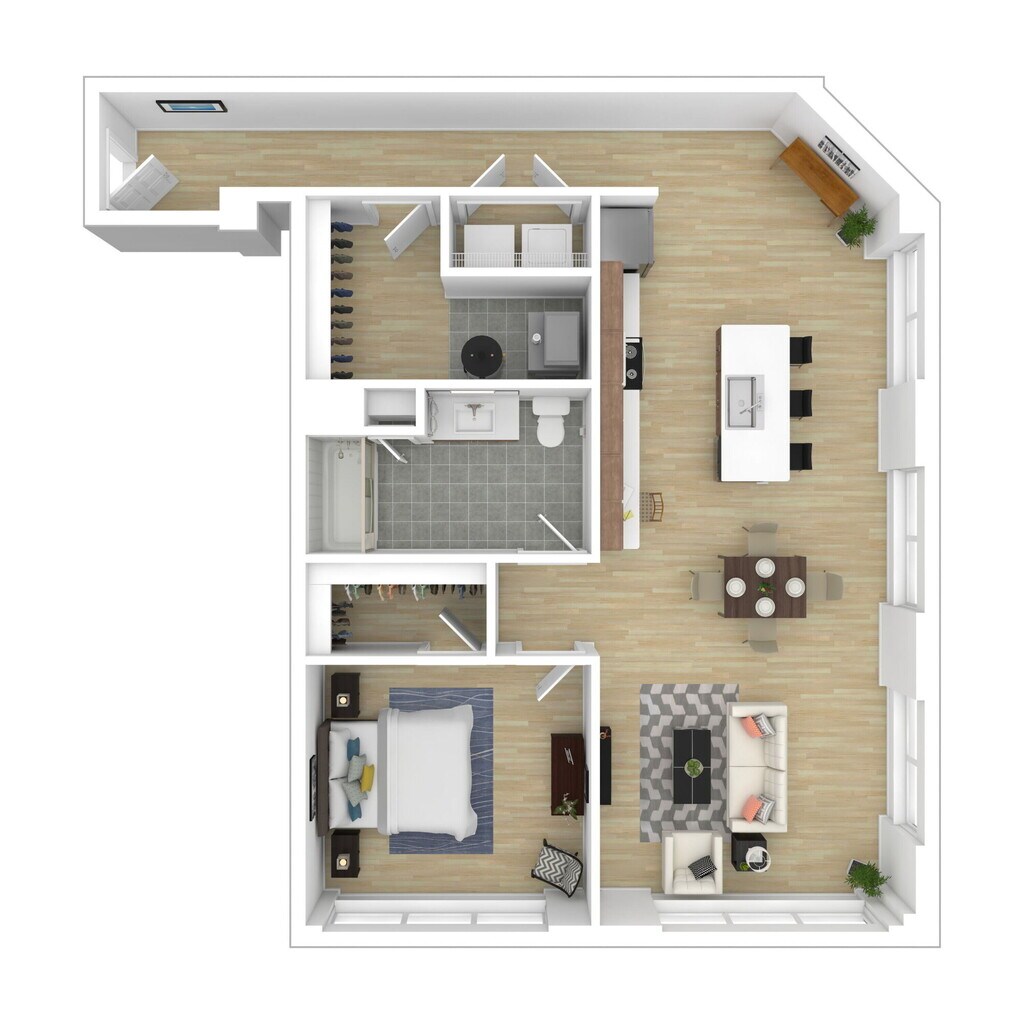 1 Dormitorio, 1 Baño, 820 pies²Disponible AhoraGalería del Modelo