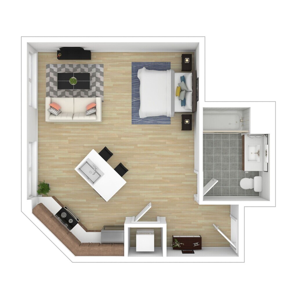 Estudio, 1 Baño, 530 pies²Disponible AhoraGalería del Modelo
