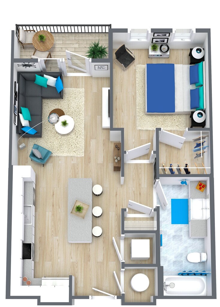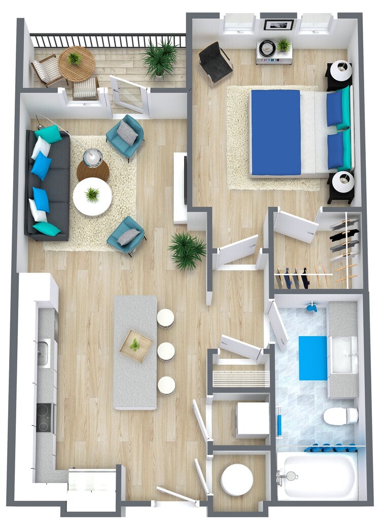 1 Dormitorio, 1 Baño, 661 pies²Disponible AhoraGalería del Modelo