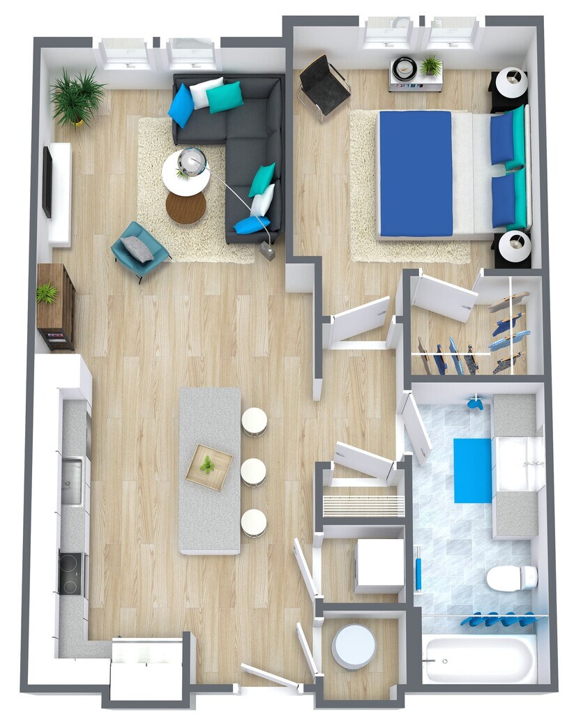 1 Dormitorio, 1 Baño, 656 pies²Disponible January 8, 2026Galería del Modelo