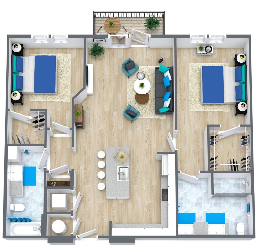 Modelo de apartamento: A2$1,6511 Dormitorio, 1 Baño, 656 sq ftDisponible Ahora![]()