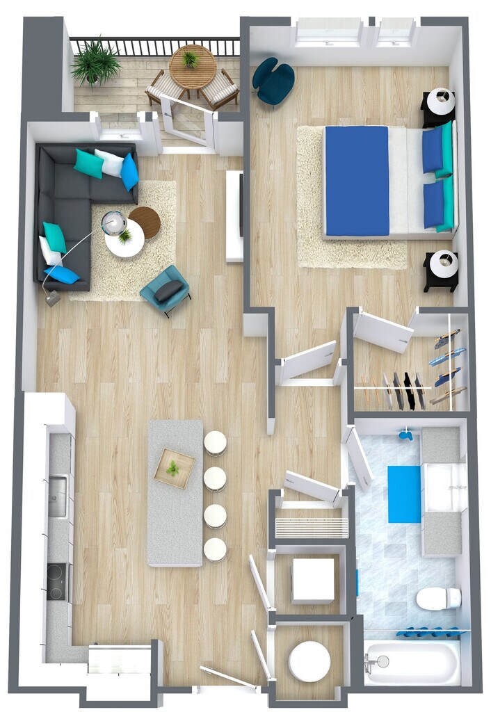 Modelo de apartamento: A7$1,5801 Dormitorio, 1 Baño, 669 sq ftDisponible January 17, 2026![]()