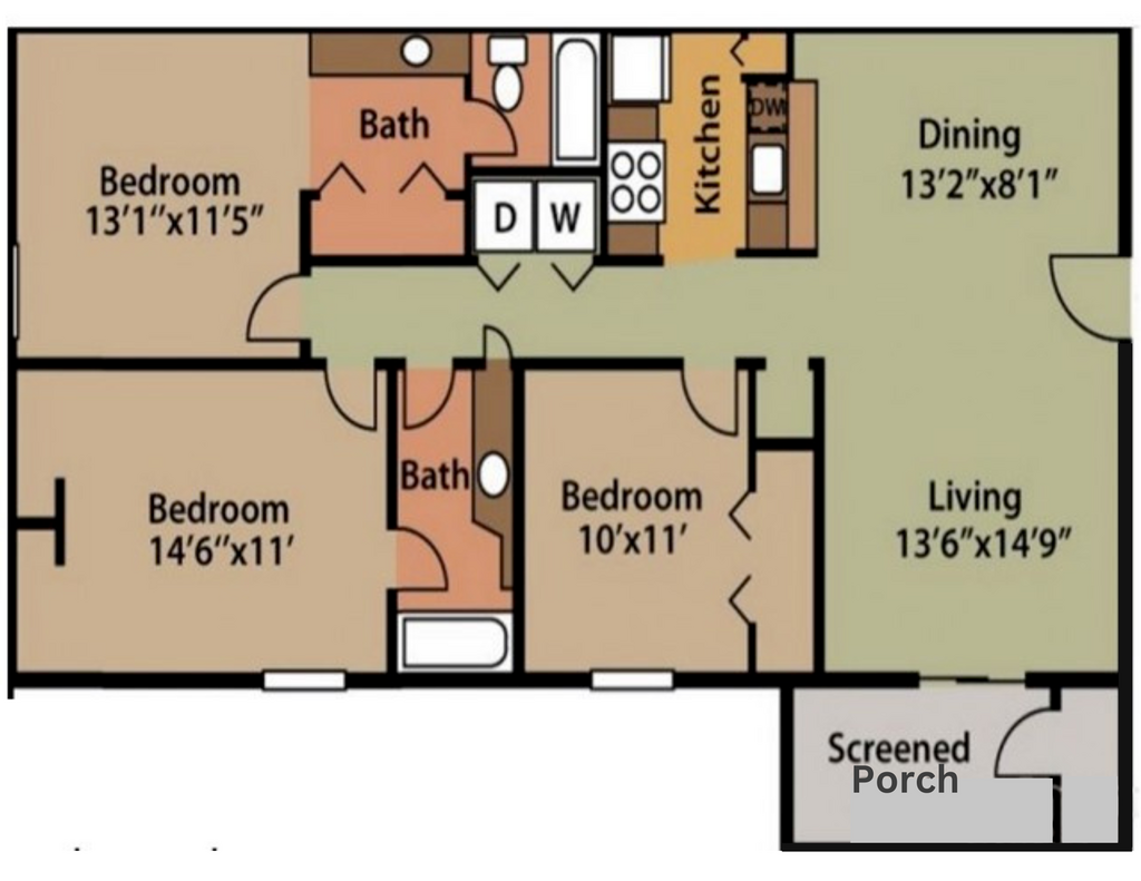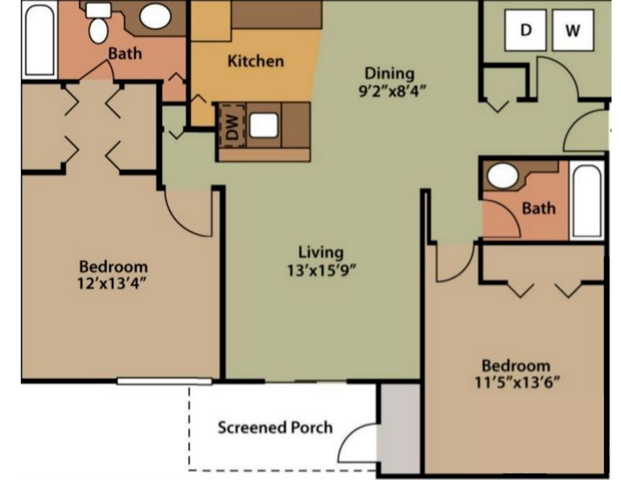 Modelo de apartamento: ShoalsDesde $1,1502 Dormitorios, 2 Baños, 1044 sq ftDisponible Ahora![]()