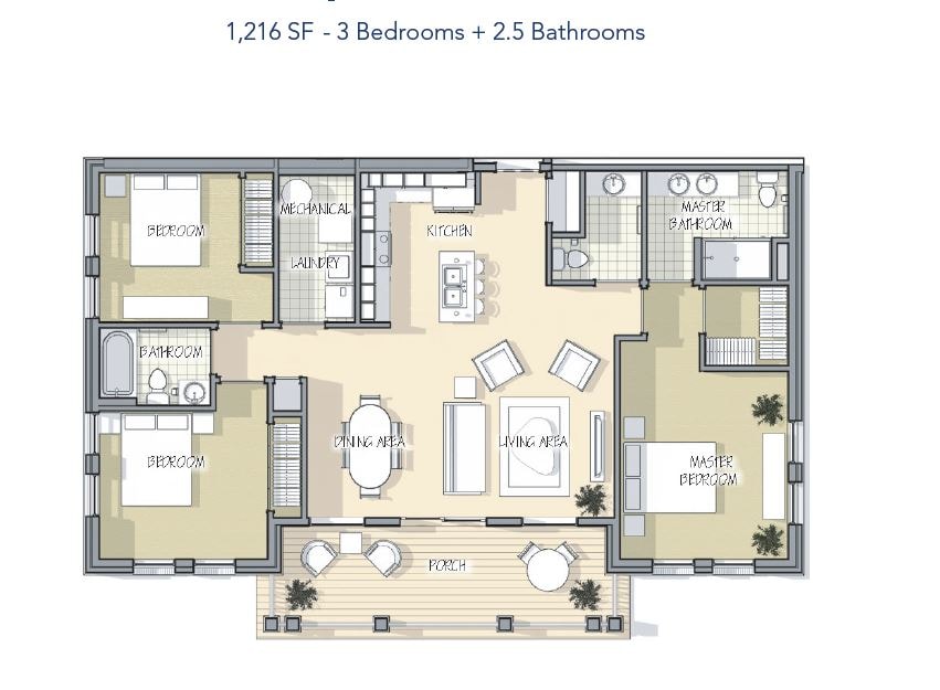 3 Dormitorios, 2.5 Baños, 1216 pies²Disponible Jan 1, 2026Galería del Modelo