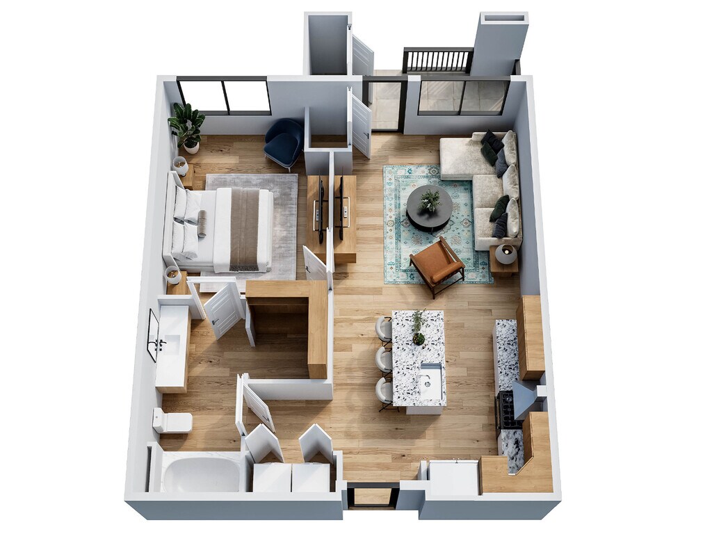 1 Dormitorio, 1 Baño, 647 pies²Disponible AhoraGalería del Modelo