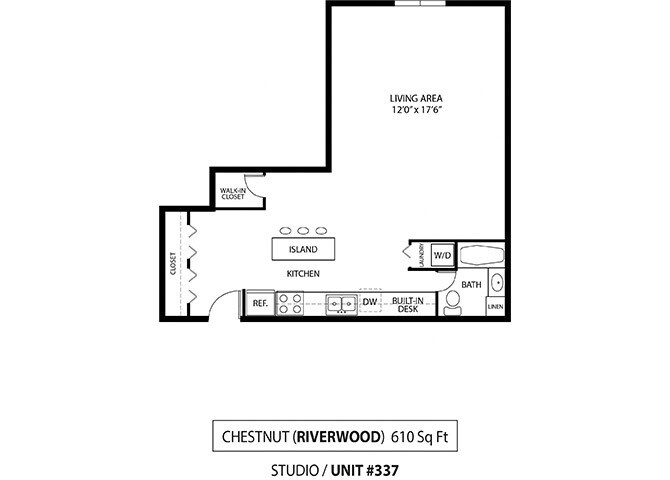 Modelo de apartamento: ChestnutLlame para PreciosEstudio, 1 Baño, 610 sq ftNo DisponibleChestnut - Plano 1 1 Dormitorio