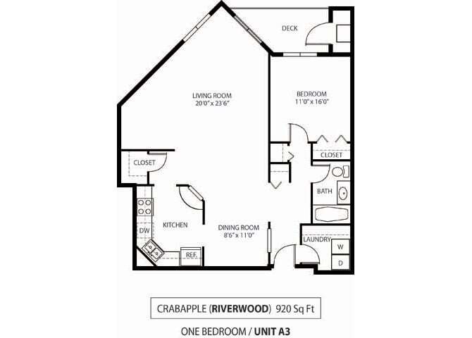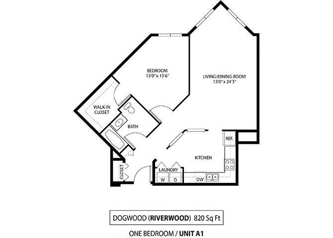Modelo de apartamento: DogwoodLlame para Precios1 Dormitorio, 1 Baño, 820 sq ftNo DisponibleDogwood - Plano 1 Crabapple