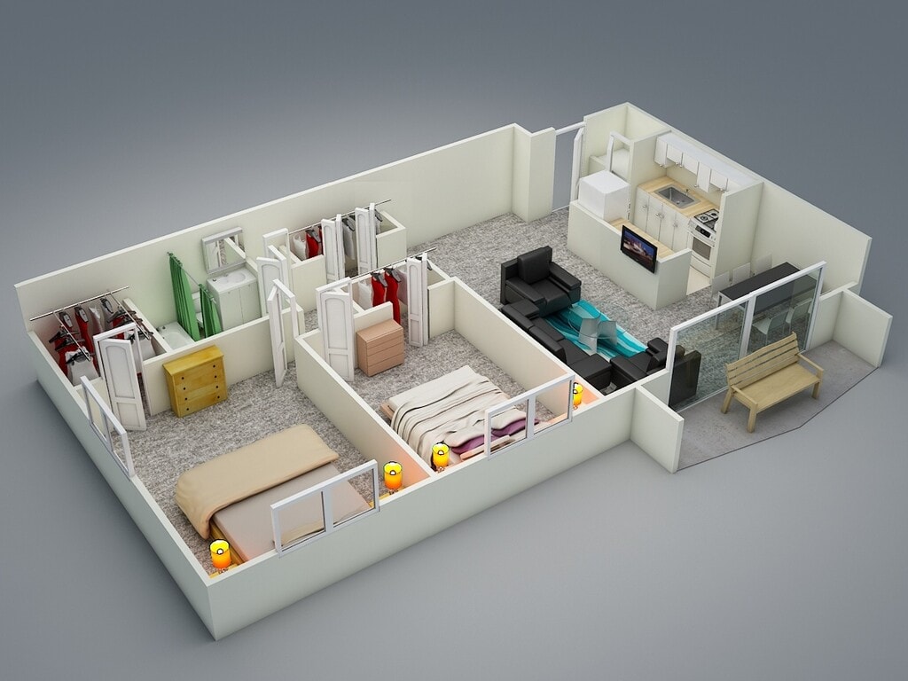 2 Dormitorios, 1 Baño, 800-862 pies²Disponible AhoraGalería del Modelo