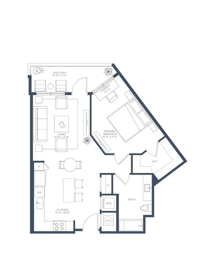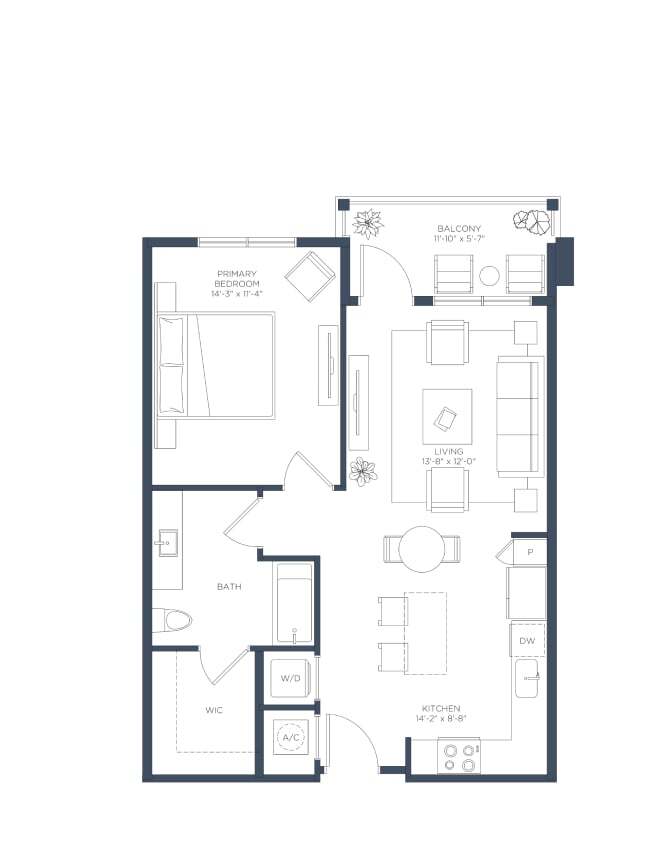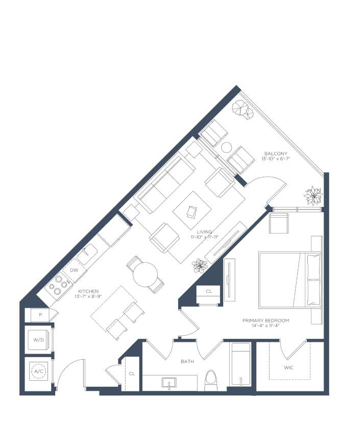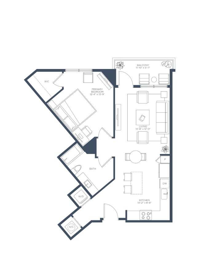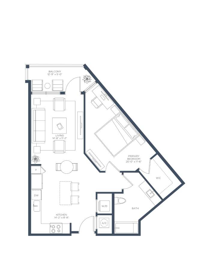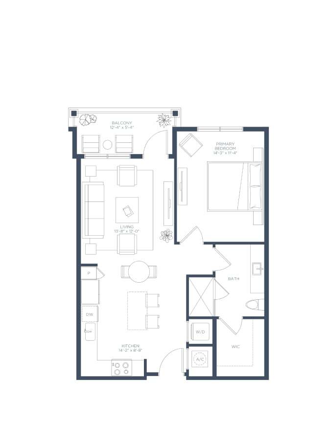 1 Dormitorio, 1 Baño, 751 pies²Disponible AhoraGalería del Modelo