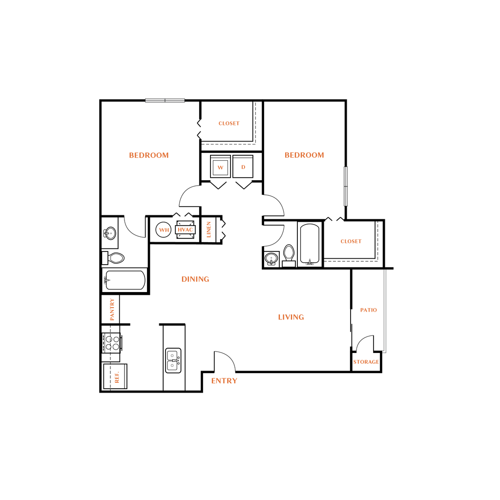 1 Dormitorio, 1 Baño, 750 pies²Disponible AhoraGalería del Modelo