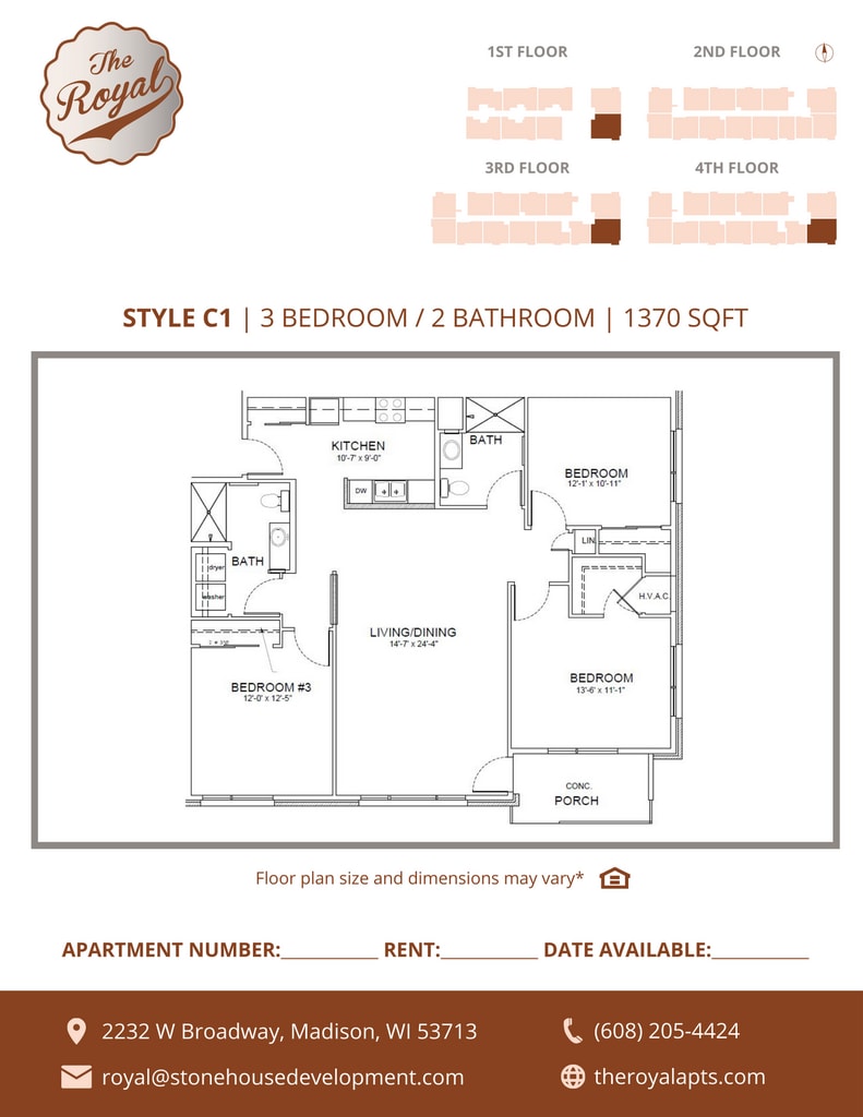 The Royal ofrece apartamentos de 2 a 3 Dormitorios desde $1,310 con 1,064–1,370 pies cuadrados. Aquí está el precio actual y la disponibilidad: