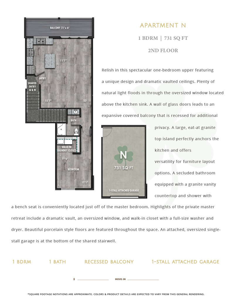 Modelo de apartamento: N$1,3751 Dormitorio, 1 Baño, 731 sq ftNo DisponibleN - Plano 1 Plano: X