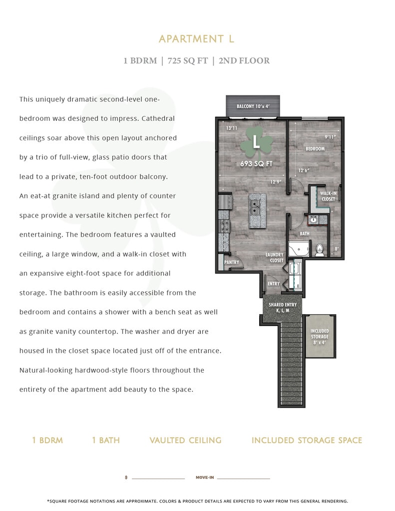 Modelo de apartamento: LDesde $1,2001 Dormitorio, 1 Baño, 693 sq ftNo DisponibleL - Plano 1 Plano: N