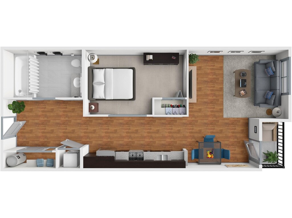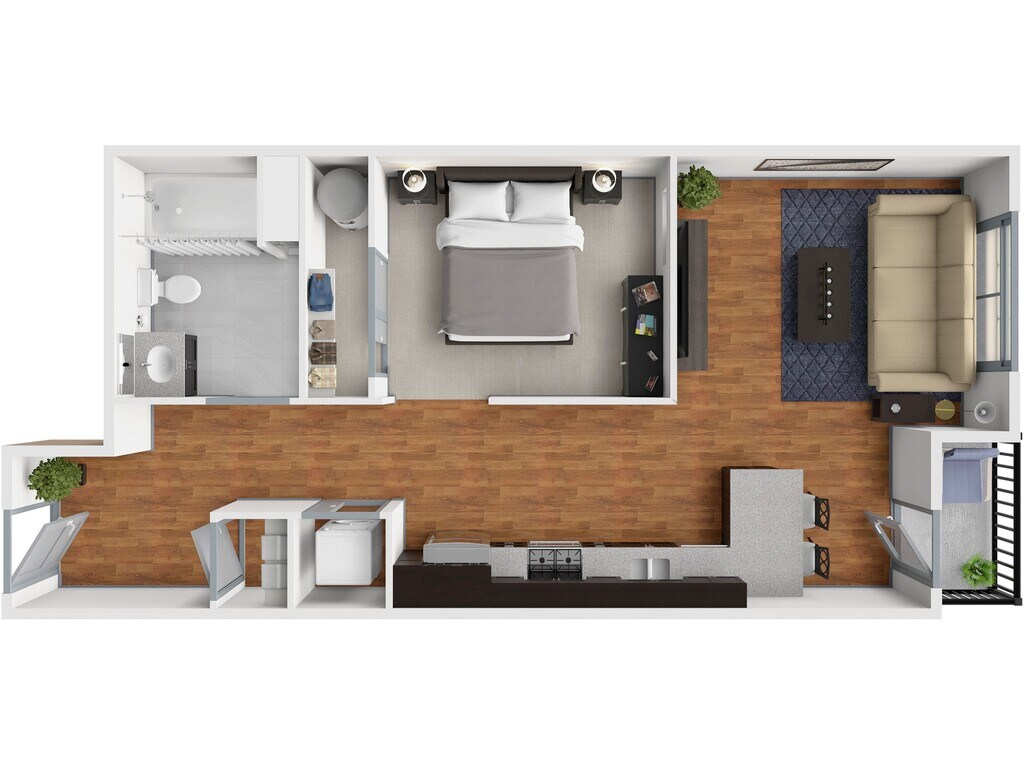 Estudio, 1 Baño, 625 pies²Disponible Oct 31El más grandeEsta opción tiene las unidades más grandes para este modeloGalería del Modelo