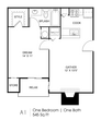 Modelo de apartamento: A11 Dormitorio, 1 Baño, 545 sq ftNo Disponible![]()