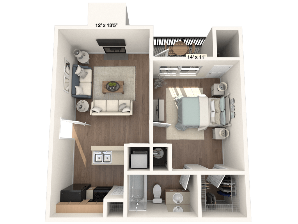 1 Dormitorio, 1 Baño, 825 pies²Disponible AhoraEl más grandeEsta opción tiene las unidades más grandes para este modeloGalería del Modelo