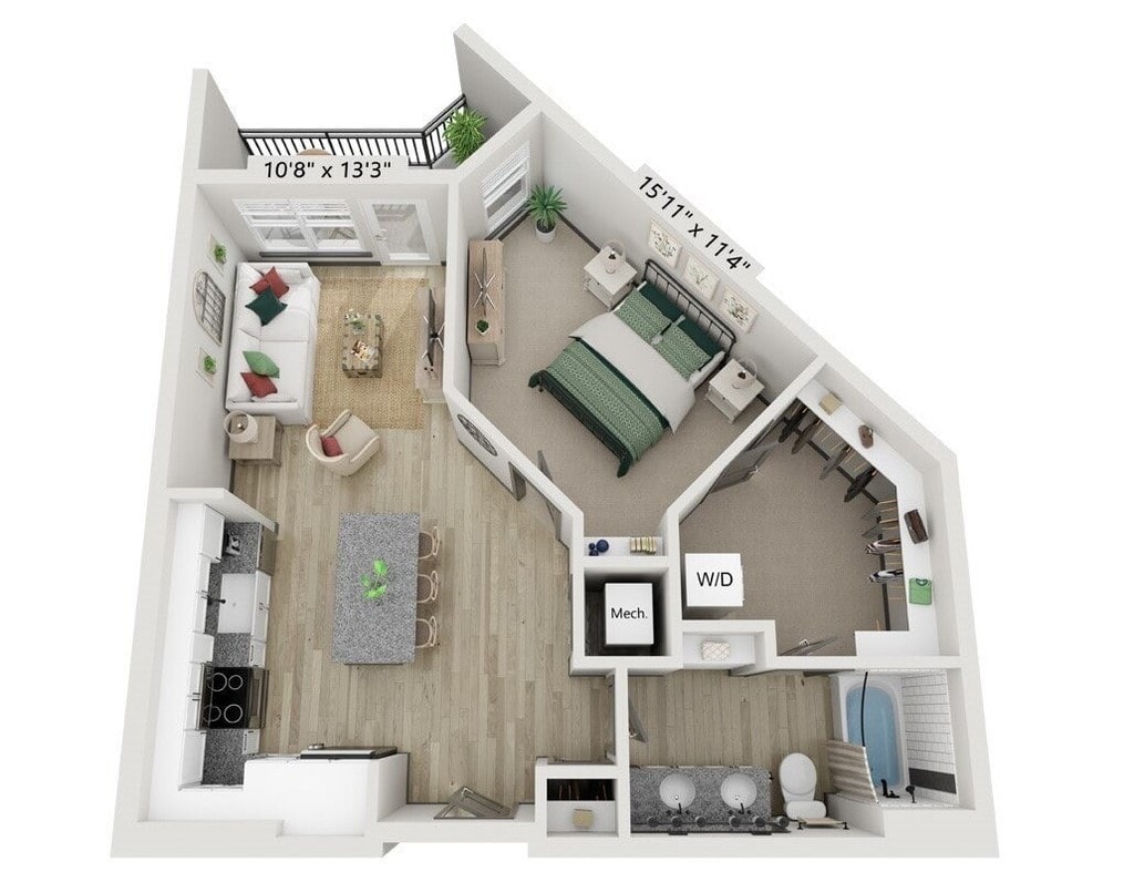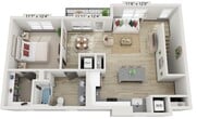 Modelo de apartamento: A1Desde $1,6151 Dormitorio, 1 Baño, 632 sq ftDisponible Ahora![]()