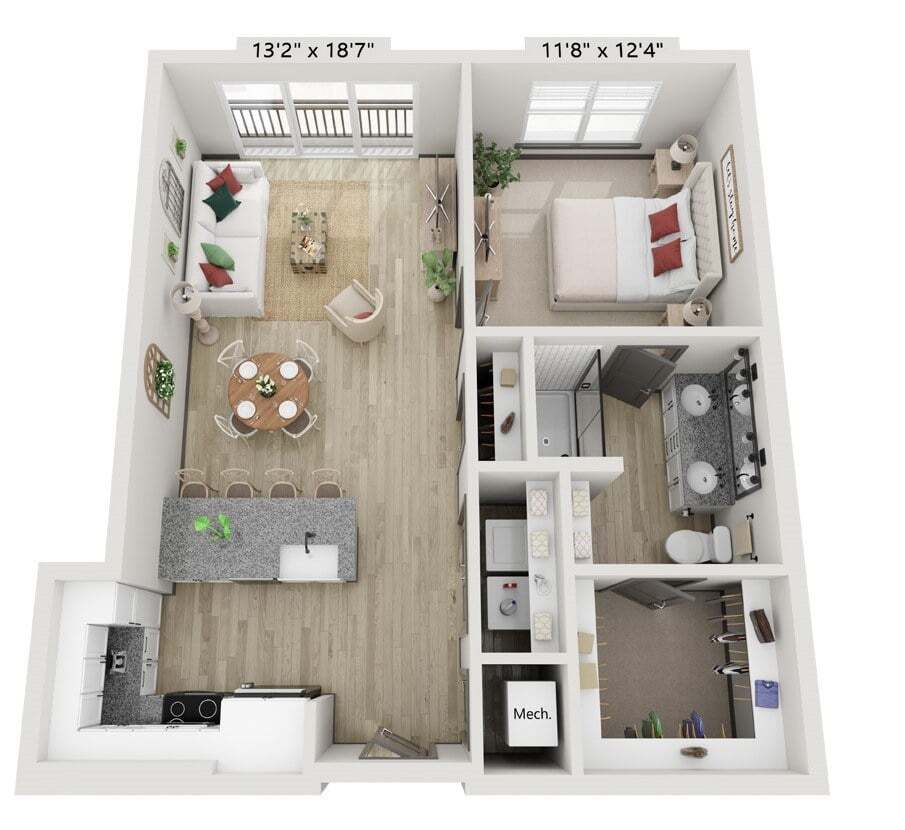 1 Dormitorio, 1 Baño, 789 pies²Disponible AhoraGalería del Modelo