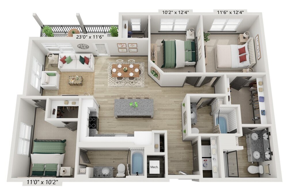Modelo de apartamento: A3Desde $1,3291 Dormitorio, 1 Baño, 796 sq ftDisponible Ahora![]()