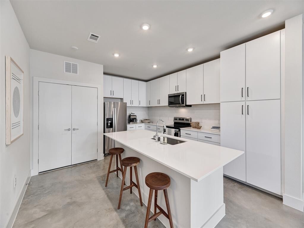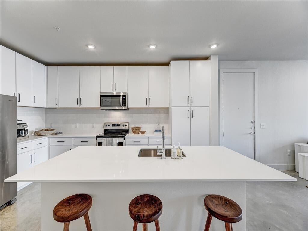 Disfruta de un maravilloso estilo de vida cuando vivas en The Saint Mary. Nuestro diseño limpio y contemporáneo ofrece una incomparable experiencia de vida para todos los residentes. Desde pisos de hormigón pulido hasta encimeras de cuarzo de color blanco y electrodomésticos de acero inoxidable, nuestros apartamentos ofrecen una sensación de paz y relajación. Las comodidades del complejo de Saint Mary son el estándar para la vida de apartamento de lujo. Cumple con tus objetivos de ejercicio en nuestro gimnasio de última generación o disfruta de un baño en nuestra piscina infinita estilo centro turístico. La vida en The Saint Mary's seguramente se siente como salir de vacaciones todos los días.