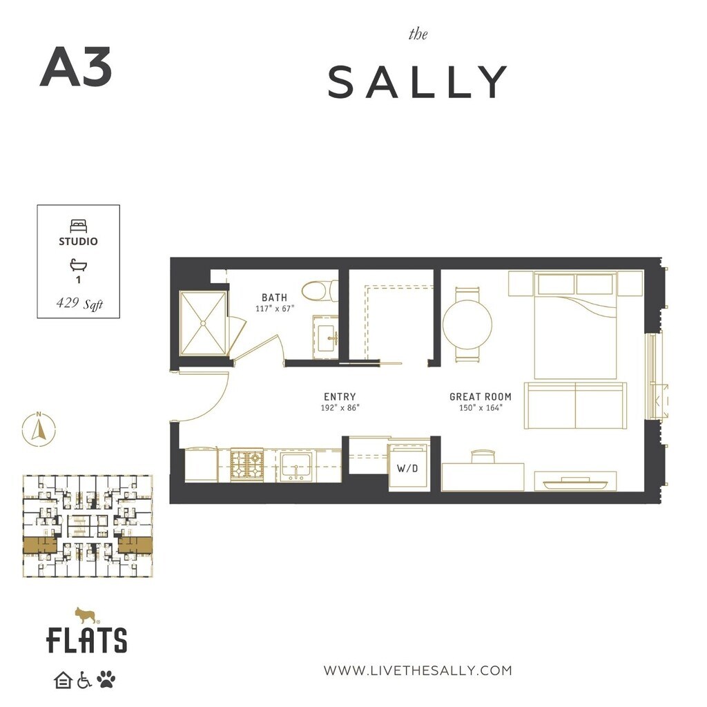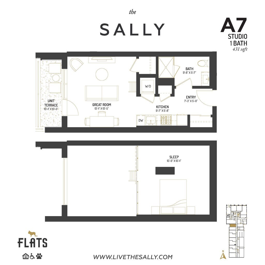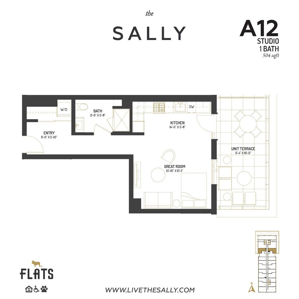 The Sally se encuentra en el Barrio Uptown Chicago y el código postal 60640 de Chicago, IL. Esta comunidad está gestionada profesionalmente por FLATS