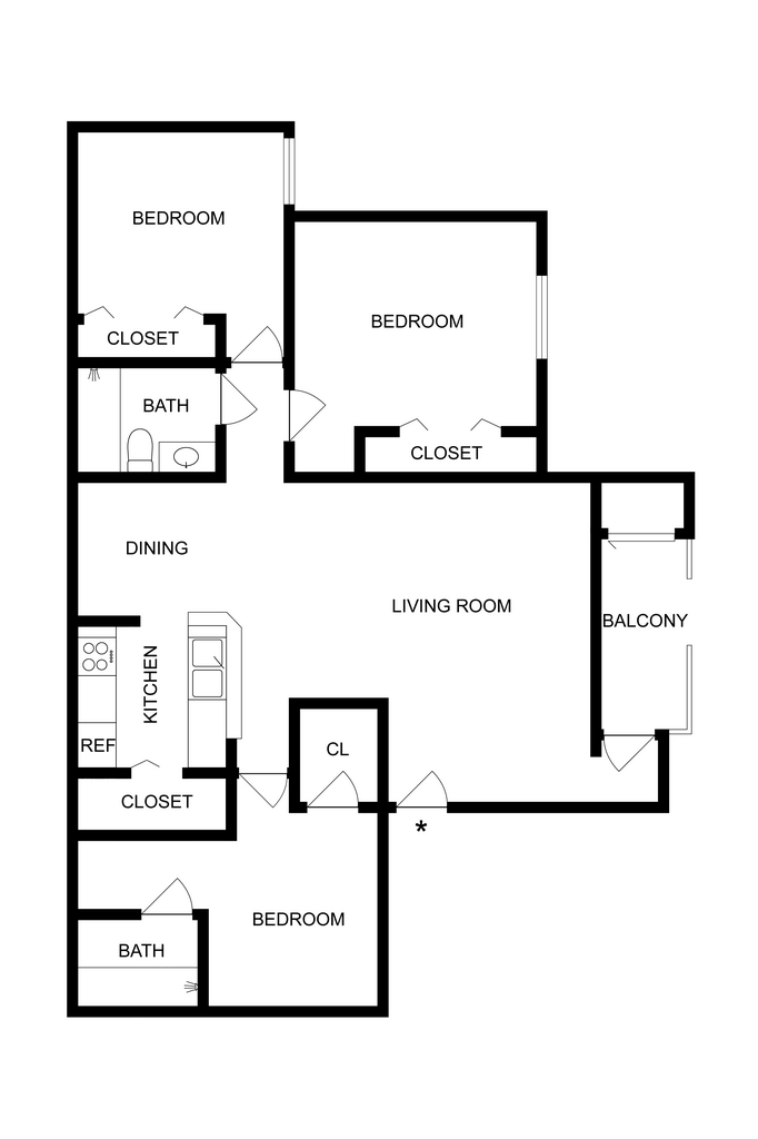 3 Dormitorios, 2 Baños, 1100 pies²Precio Mensual TotalDisponible AhoraGalería del Modelo