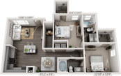 Modelo de apartamento: A3Desde $1,1101 Dormitorio, 1 Baño, 795 sq ftDisponible Ahora![]()