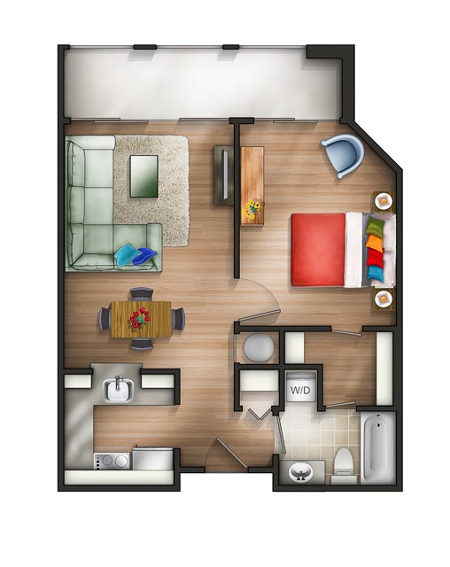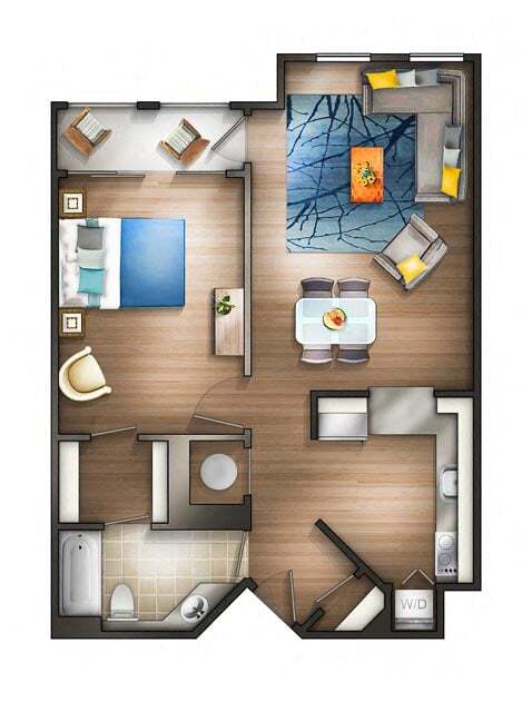 1 Dormitorio, 1 Baño, 728 pies²Disponible AhoraEl más grandeEsta opción tiene las unidades más grandes para este modeloGalería del Modelo