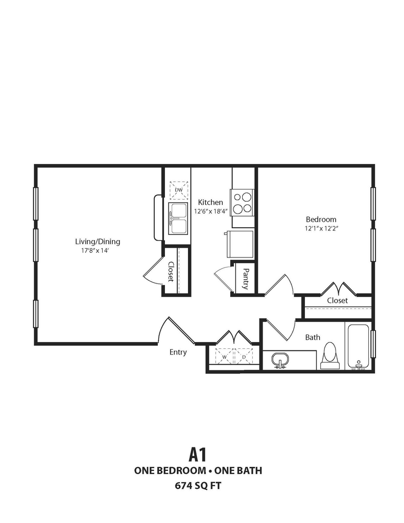 Modelo de apartamento: 1x11 Dormitorio, 1 Baño, 674 sq ftDisponible Ahora1x1 - Plano 1 Unidad de apartamento: 101Modelo de apartamento: 1x11 Dormitorio, 1 Baño, 674 sq ftDisponible Ahora2 Dormitorios