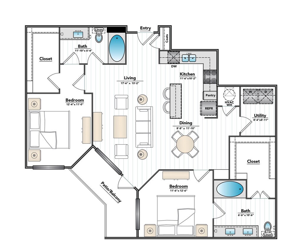 Modelo de apartamento: A2Desde $1,3941 Dormitorio, 1 Baño, 698-728 sq ftDisponible AhoraLos planos de la planta son una interpretación artística. Todas las dimensiones son aproximadas. Los tamaños o el detalle del producto real y sus especificaciones pueden variar. No todas las características están disponibles en todos los hogares para rentar. Los precios y la disponibilidad están sujetos a cambios. El alquiler que se muestra es mensual. Se pueden aplicar ciertos cargos, por ejemplo, entrega de paquetes, recolección de basura, agua, servicios, etc. Depositos varian. Consulta a un representante para conocer detalles.