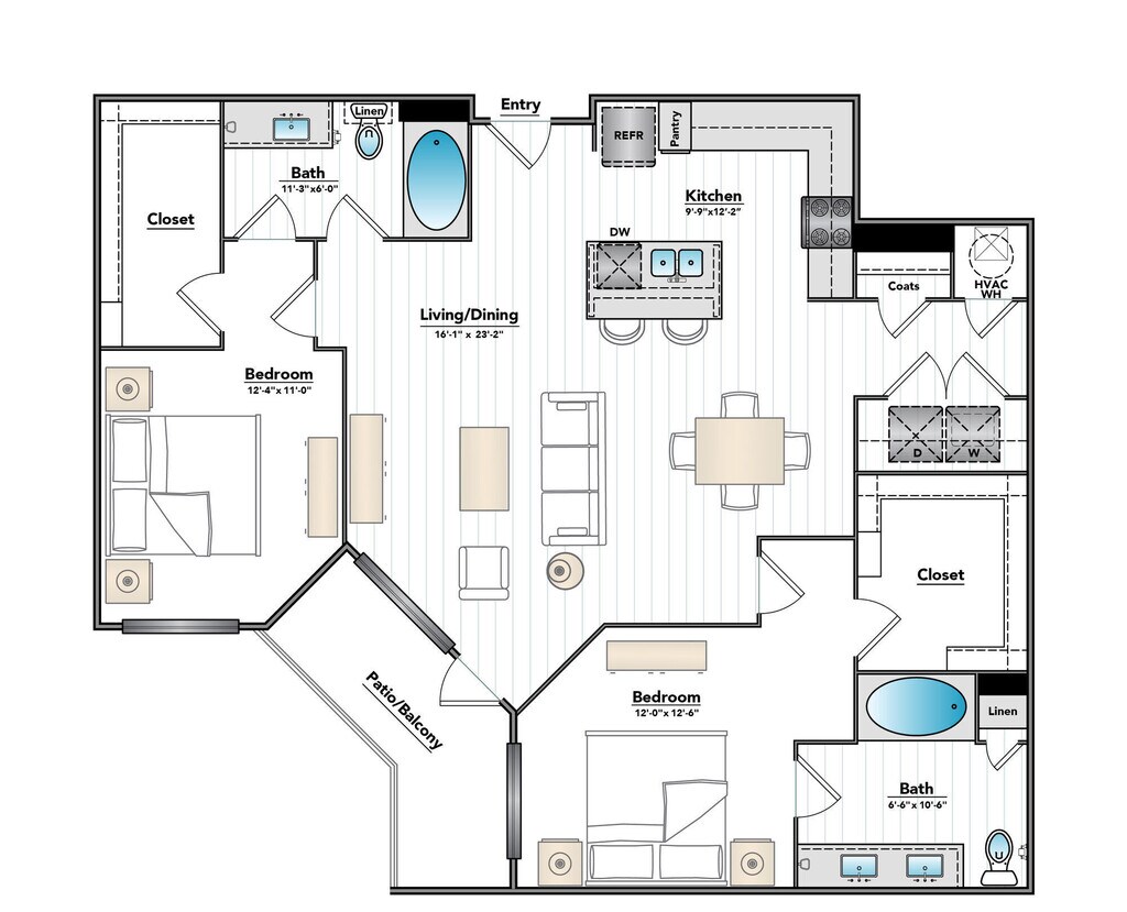 1 Dormitorio, 1 Baño, 845 pies²Disponible AhoraGalería del Modelo