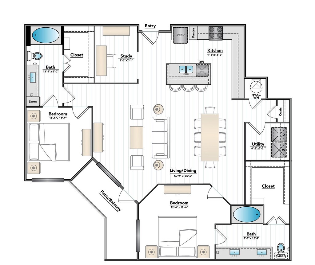 1 Dormitorio, 1 Baño, 762-792 pies²Disponible AhoraGalería del Modelo