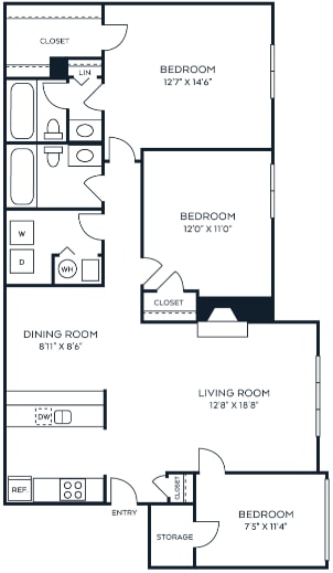 2 Dormitorios, 2 Baños, 1075 pies²Precio Mensual TotalDisponible AhoraGalería del Modelo