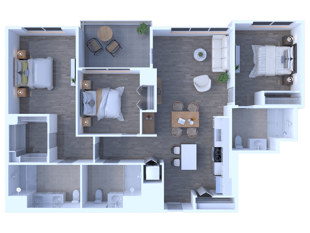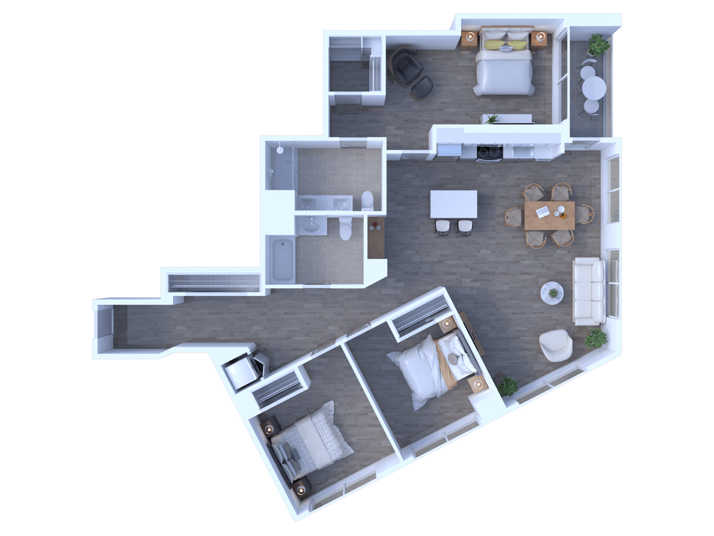 Modelo de apartamento: Two Bedroom B1Llame para Precios2 Dormitorios, 2 Baños, 986 sq ftNo Disponible![]()