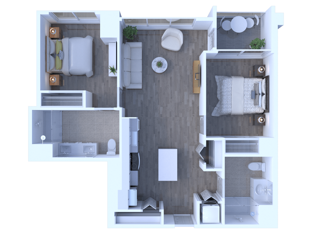 2 Dormitorios, 2 Baños, 987 pies²Galería del Modelo