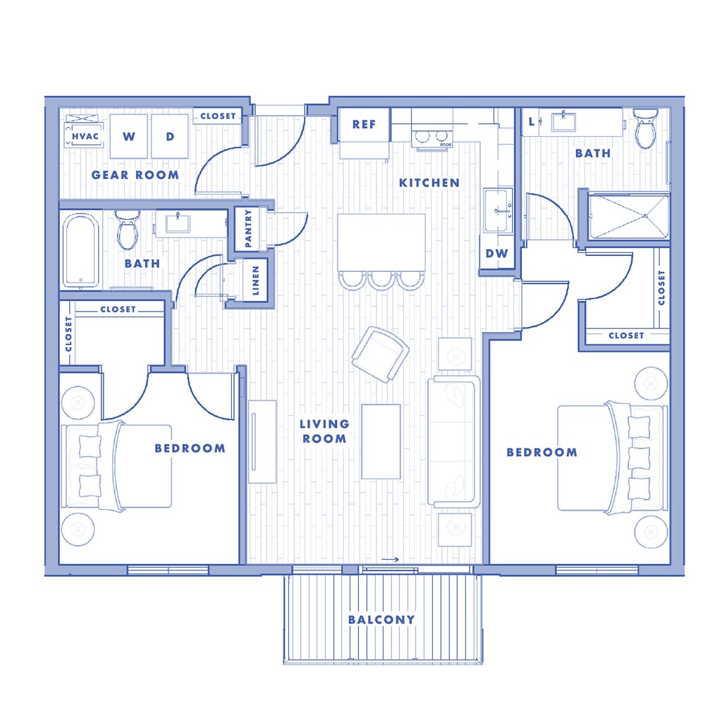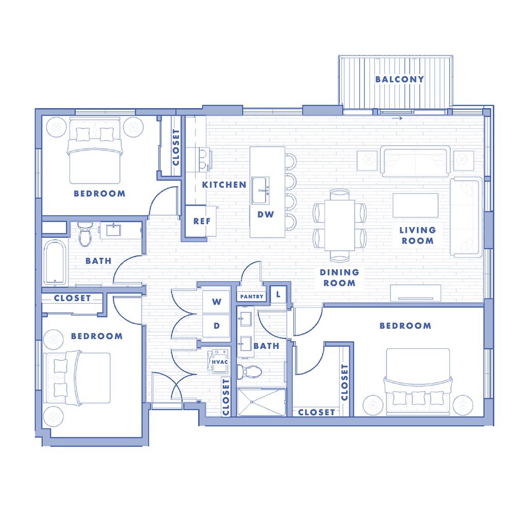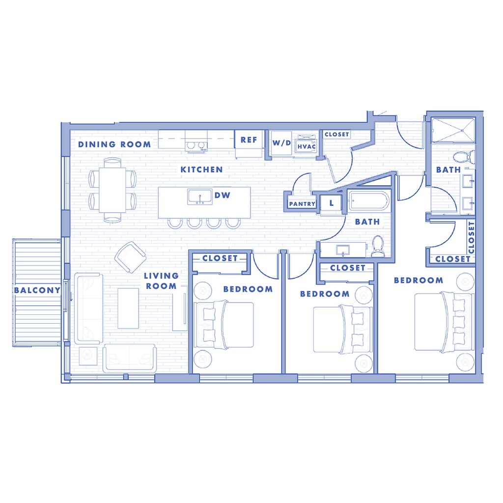 Modelo de apartamento: A3Desde $1,4951 Dormitorio, 1 Baño, 754 sq ftDisponible AhoraPlanosFotos![]()